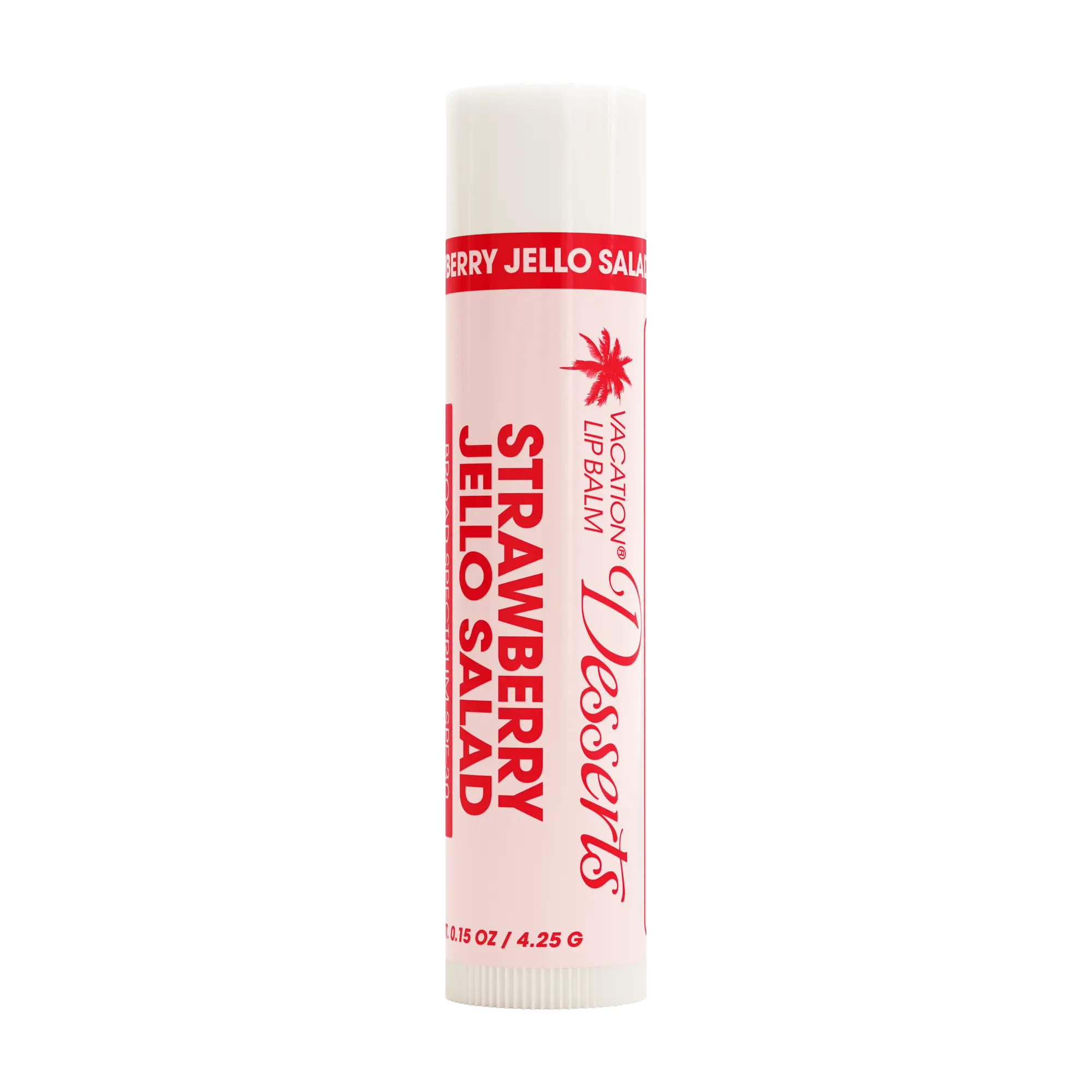Our favorite lip balm right now. Vacation Incs Vegan and cruelty free lip balm in the flavor StrawberryJello Salad. Broad Spectrum SPF 30 with water resistance wear for up to 80 minutes. #lipbalm #sunscreen #orangecart #tiktokshop #fyp
