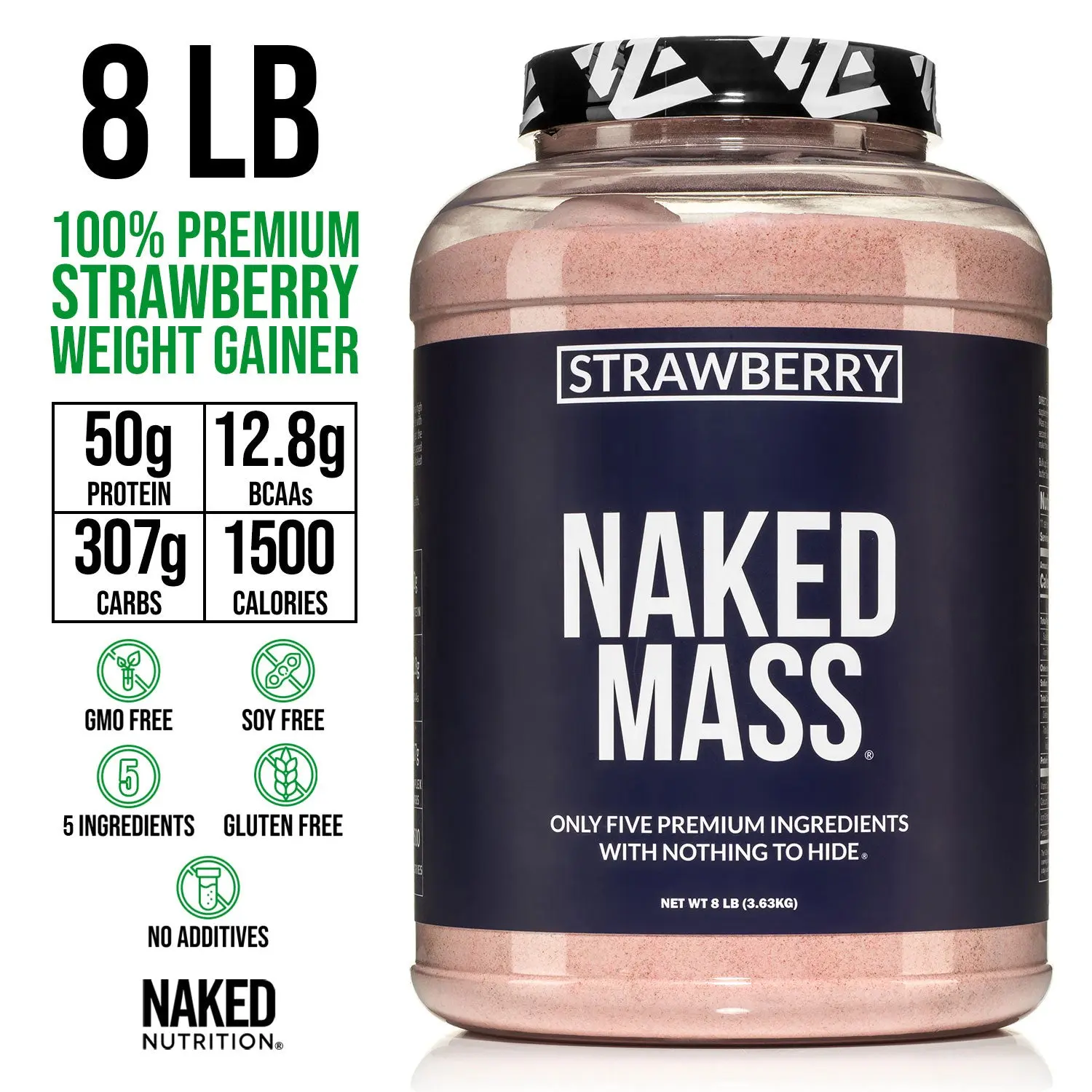 Strawberry Naked Mass is the ultimate muscle building and weight gaining supplement. Combining Naked Whey, Naked Casein, and organic maltodextrin, Strawberry Naked Mass is the perfect blend of fast and slow absorbed proteins, and complex carbohydrates. Each serving contains 1500 calories and 50 grams of high quality protein.