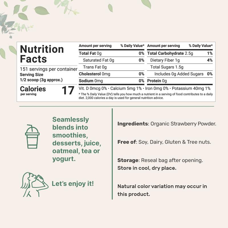 Organic Strawberry Powder, Freeze Dried Strawberry for Baking, 12 Ounce, Non-GMO and Vegan Friendly.