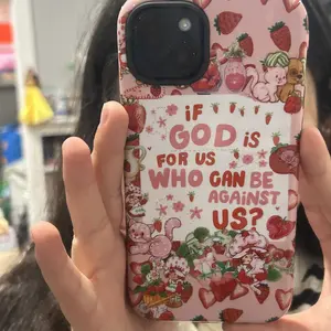 5. Strawberry Shortcake God Phone Case, Strawberry Tough Phone Case with Whimsical Characters and Inspirational Bible Quote, Gift for her