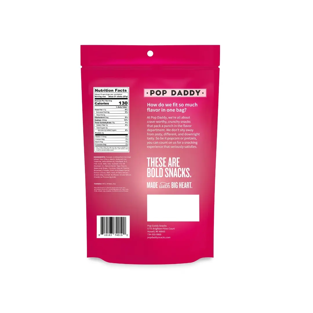 I didn't know you could pack so much flavor into a pretzel piece but Pop Daddy sure figured it out! Each pretzel is COATED! These Strawberry Shortcake pretzels are addictively delicious! I am so glad I got a 3 pack because they exceeded my expectations! Would absolutely purchase again!