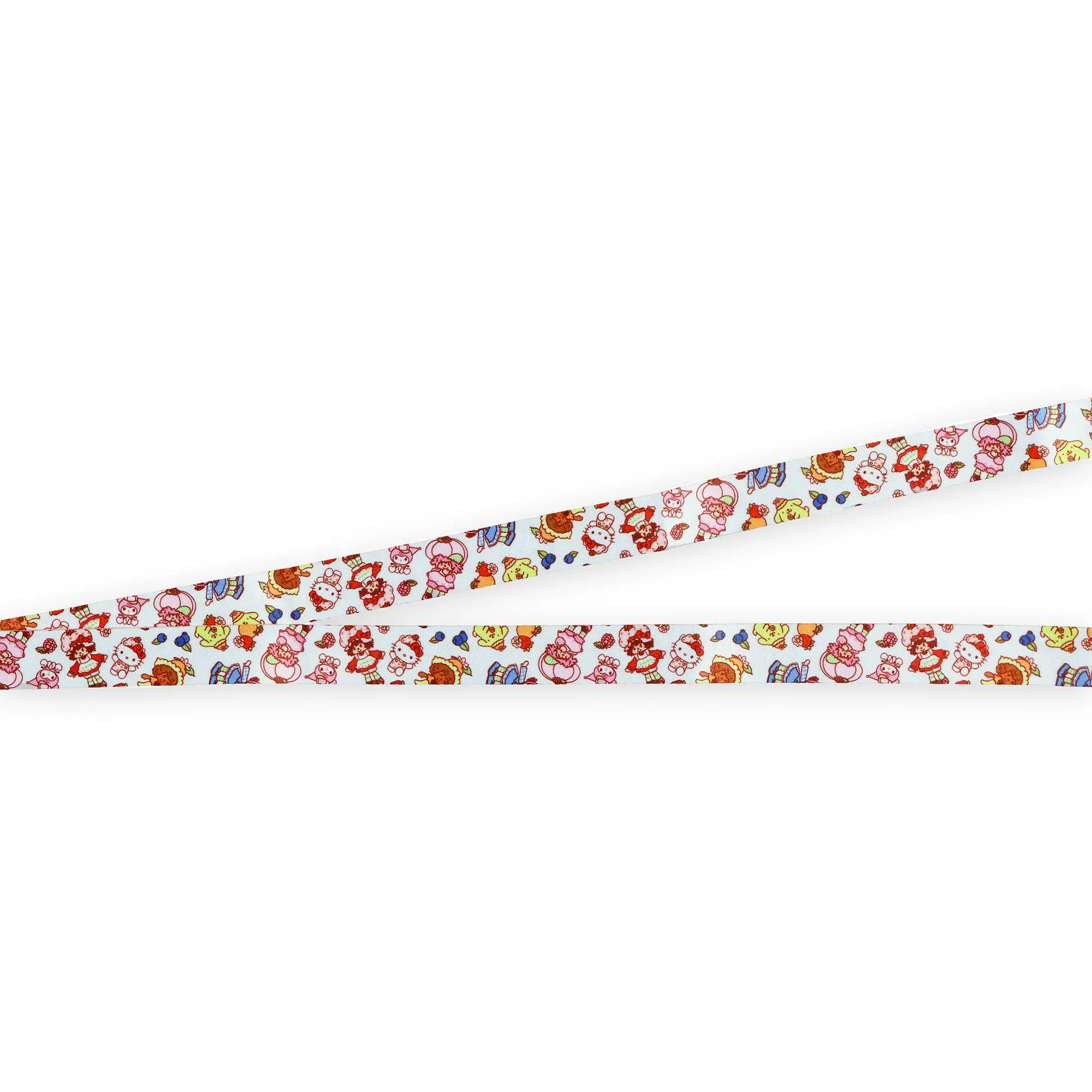 This Strawberry Shortcake x Sanrio Hello Kitty & Friends lanyard combines two classic worlds into one colorful everyday accessory. The strap showcases both beloved Strawberry Shortcake characters and Sanrio favorites like Hello Kitty, Cinnamoroll, My Melody, and Pompompurin, surrounded by berries and playful details. It is 27 inches long and includes a detachable 4.5 x 3-inch clear badge holder, a lobster clasp, and a 2-inch strawberry-shaped rubber charm that ties the theme together. The collaboration combines the sweetness of Strawberry Shortcake with the charm of Sanrio's Hello Kitty & Friends. Bright colors and detailed artwork make it a standout piece, while the practical build ensures it helps carry IDs, cards, or keys. Officially Licensed Product Two-Sided Character Artwork: One side features Strawberry Shortcake, Blueberry Muffin, and Orange Blossom alongside Hello Kitty, Cinnamoroll, My Melody, and Pompompurin, surrounded by berries. The reverse side has a light pink background decorated with fruit, bows, and flowers for a softer all-over print. Detailed Collectible Charm: A 2-inch strawberry-shaped rubber charm is attached to the lobster clasp. The charm is printed with "Hello Kitty and Friends" and "The World of Strawberry Shortcake," adding a playful detail that complements the strap design. Safety and Convenience Built In: A breakaway clasp at the top of the strap allows for quick removal. At the same time, the detachable red buckle makes it easy to release only the lower portion when needed. This design balances safety, comfort, and everyday function. Strong Nylon Construction: Made from durable nylon, the strap measures 27 inches from top to bottom. It's lightweight yet sturdy enough for repeated use, offering reliable support whether you're carrying ID badges, transit cards, or small accessories.