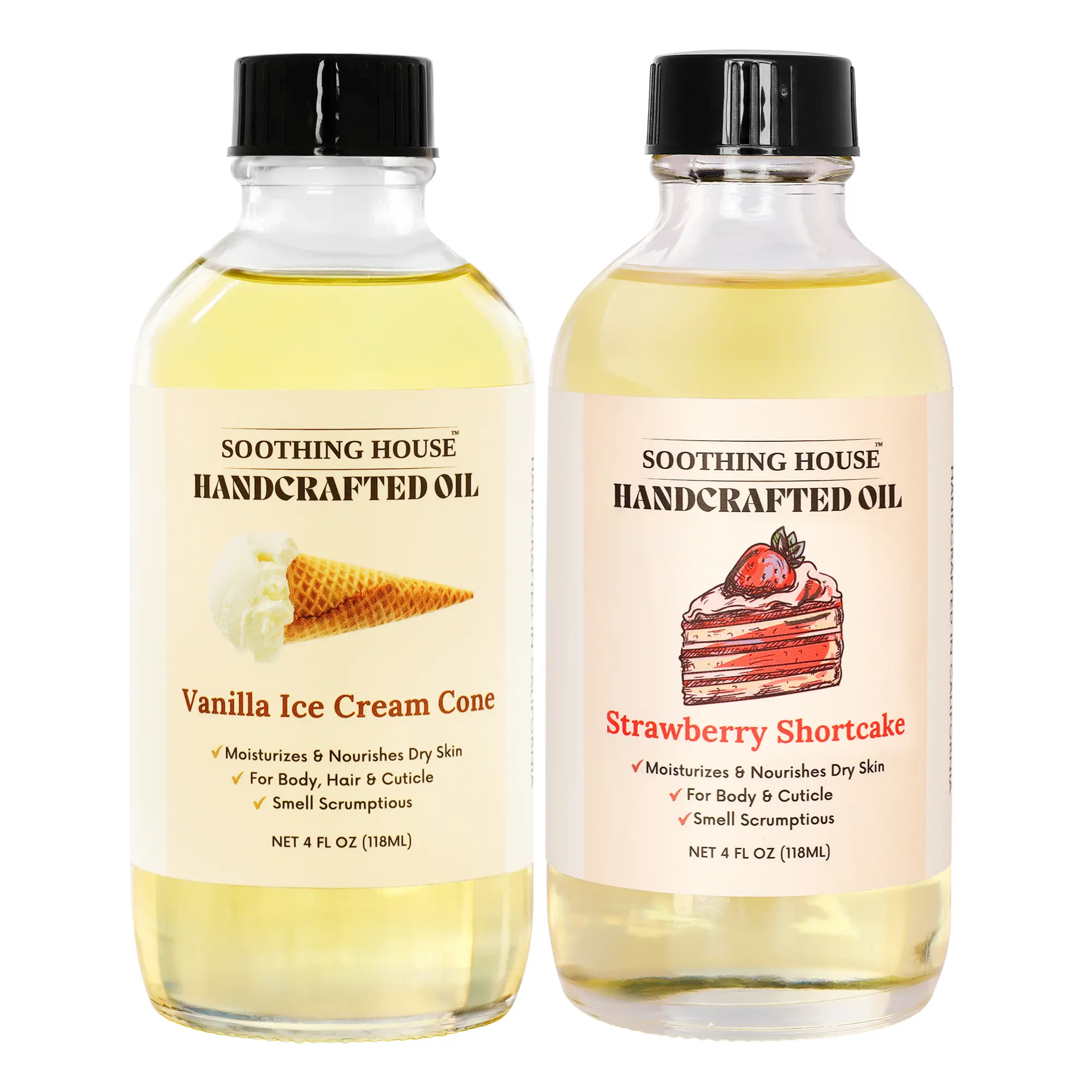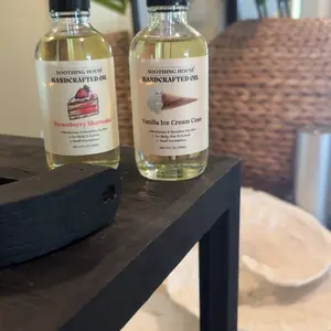 Experience the joy of these handcrafted oils. The Vanilla Ice Cream Cone oil is creamy and scrumptious, while the Strawberry Shortcake oil boasts a sweet strawberry scent. Both are perfect for those seeking a soothing and nourishing touch. Enjoy the delightful aromas and benefits in every drop.
