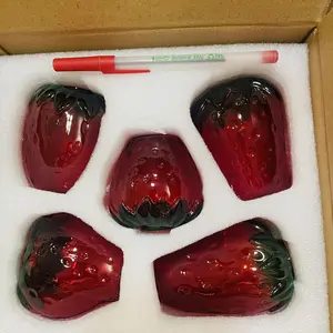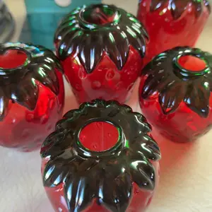 【Funky Strawberry Glass Vase】Vibrant red strawberries with hand-painted green leaves, set of 5 different strawberry cute vases give a more vivid look. These lovely strawberry shaped planters will add a pop of color to your room with their cute and functional design.