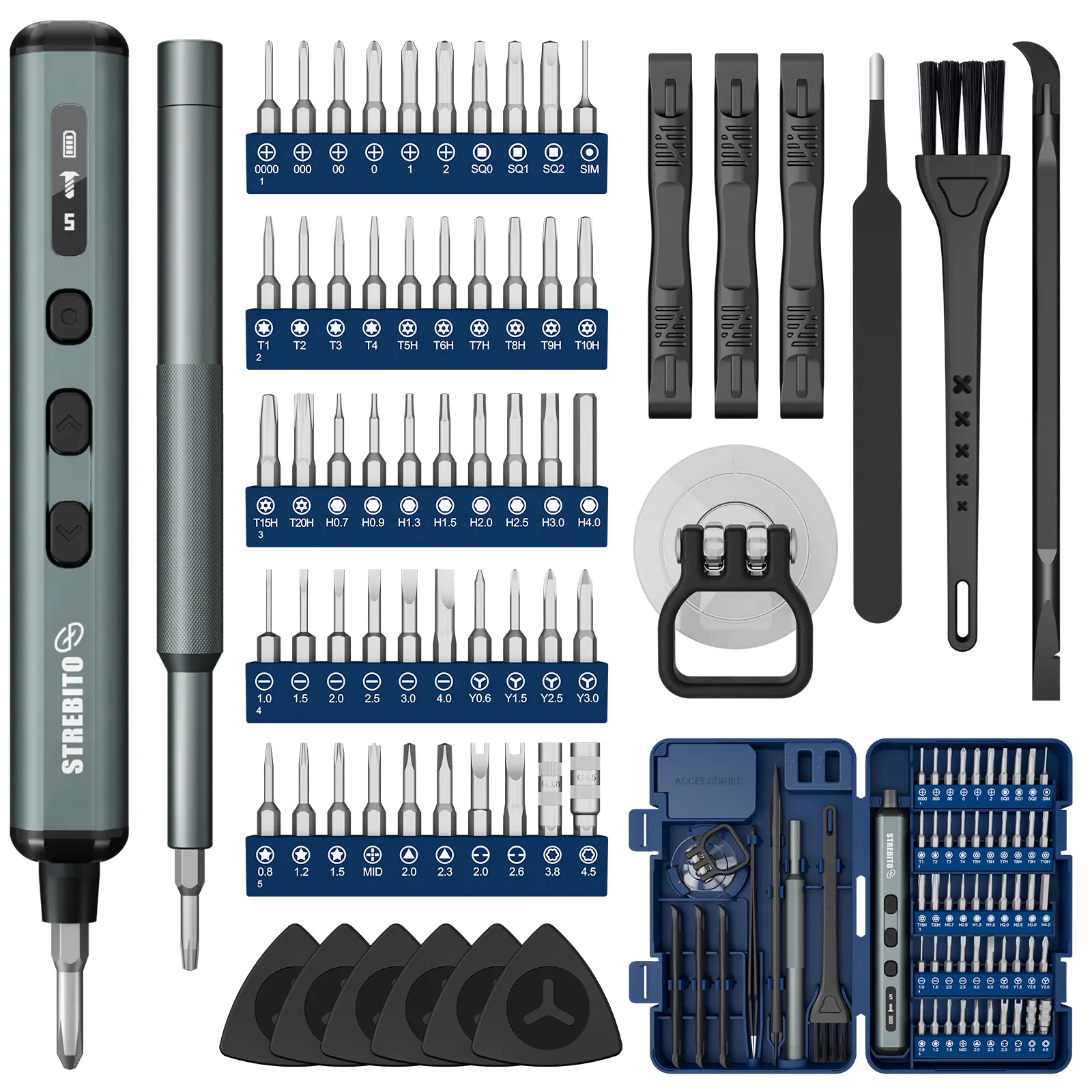 【Compact Storage & Lifetime Warranty】This electric mini screwdriver set comes with a dual-sided storage box with organized compartments, and a soft-gel labeled bit base for quick access, keeping all tools and bits neatly stored and portable. This cordless screwdriver is covered by STREBITO's lifetime warranty. If you encounter any issues with your small powered screwdriver, simply contact customer service for help