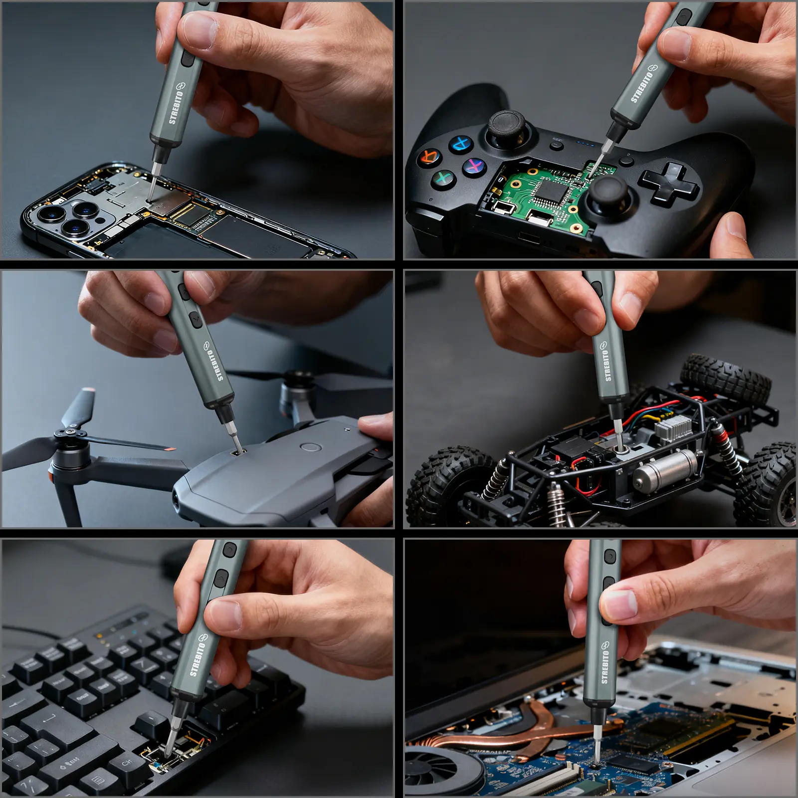 ·【5-Level Torque Control】This STREBITO mini electric screwdriver features 5 adjustable torque levels up to 0.5 Nm and supports up to 7 Nm manual use, making it perfect for precision repair and assembly of PCs, laptops, computers, phones, MacBooks, RC cars, drones, keyboards, PS4/PS5, and a wide range of small electronic devices, combining versatility and control in one compact cordless tool