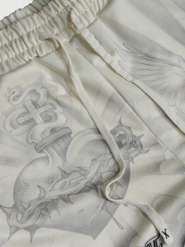 Street Life men's casual wide leg religious style pants, unisex apricot casual sweatpants, Angel Sacred Heart Saint print autumn and winter sports pants, Athleisure Style Bottoms