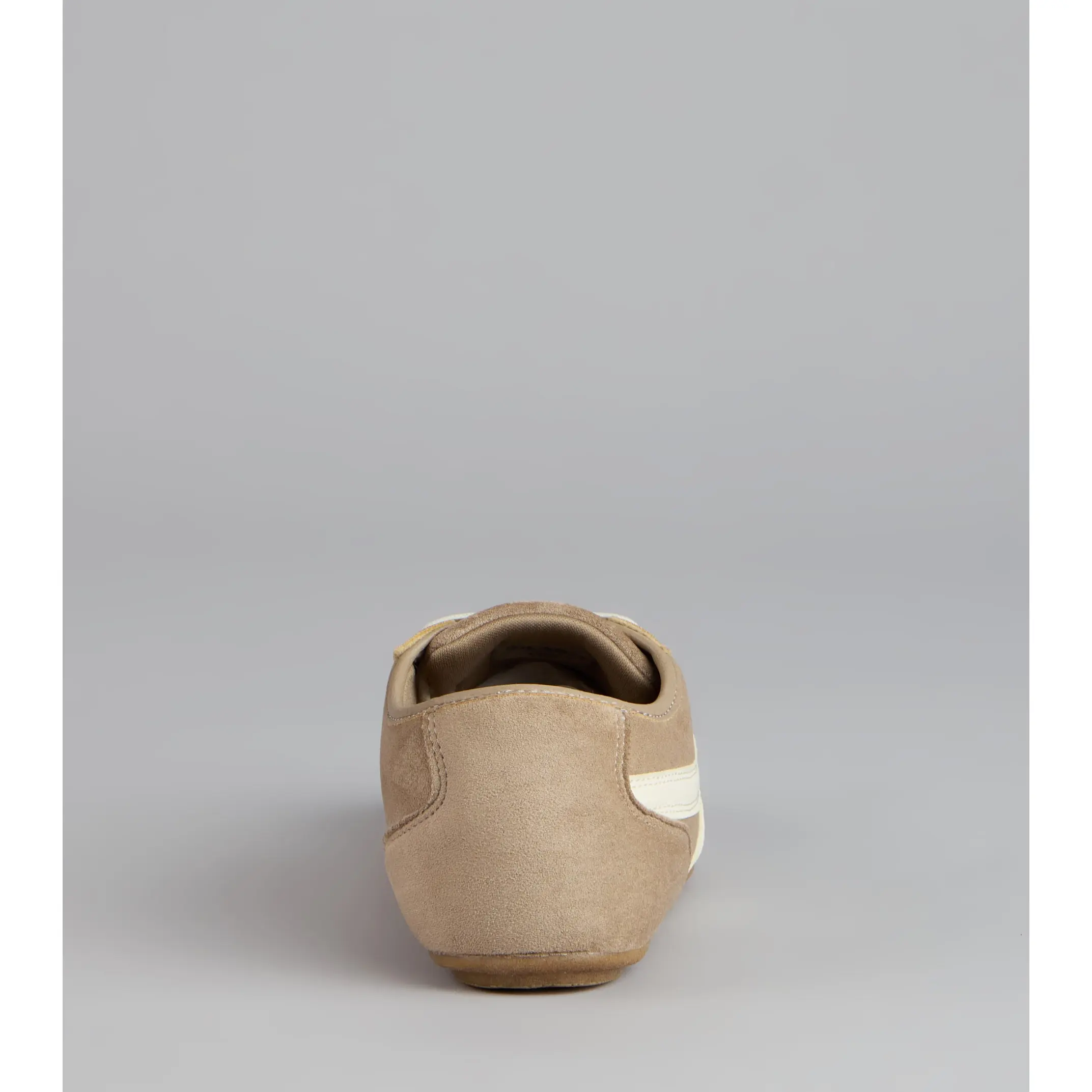 Cool, comfy, and city-ready—these microfaux suede sneakers feature sleek faux leather side stripes and a rubber traction sole that’s made for moving. Perfect for errands, off-duty looks, or casual hangs.