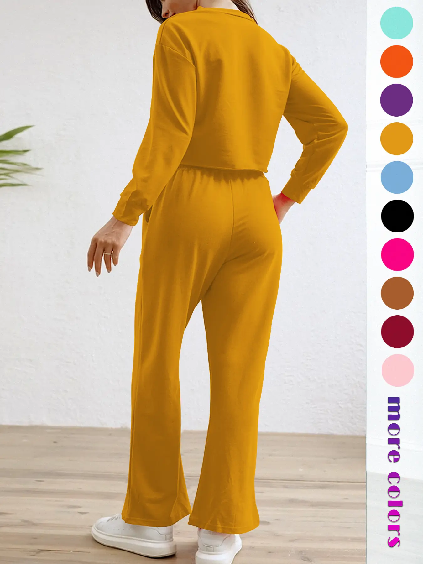 Street Style Casual Set, Two-Piece Pants Set, Sporty Two-Piece, Pure Color Elegant Two-Piece, Long Sleeve Two-Piece, Outdoor Sports Travel Set, Fitted