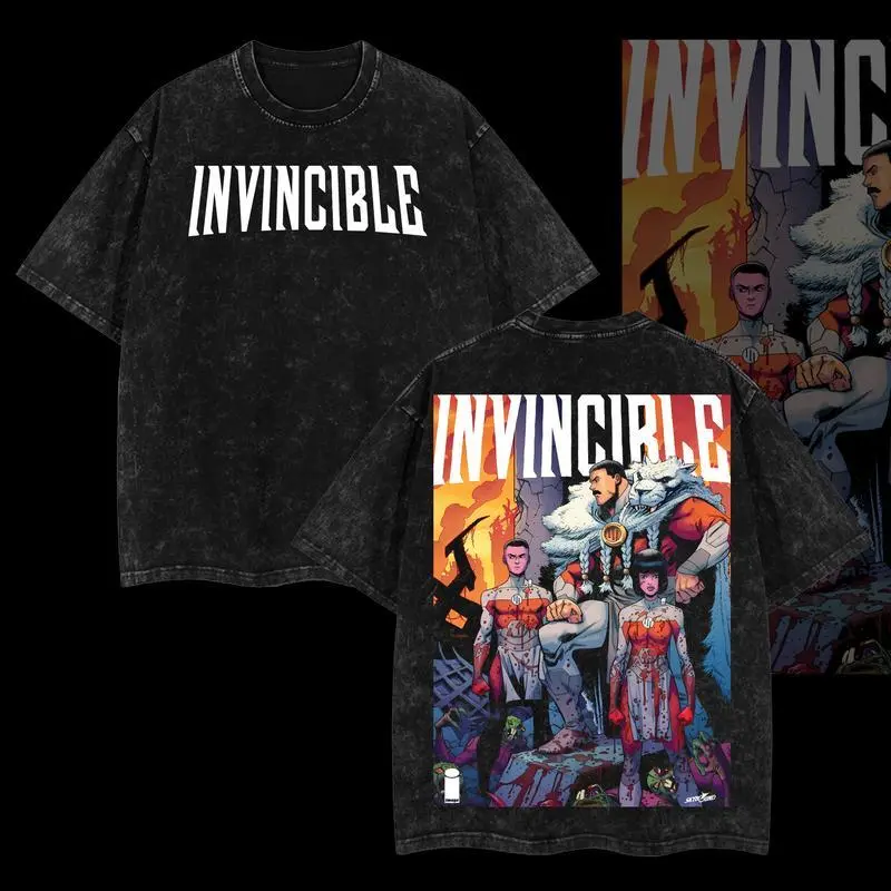 Streetwear Invincible #129 - Multiverse War Comic Double Printed Oversize Lightweight Acid Washed Tee TV Series Graphic Cotton Tee T-Shirt graphic tee superhero fan