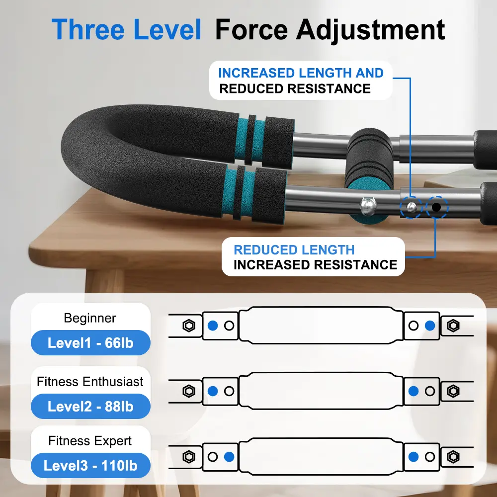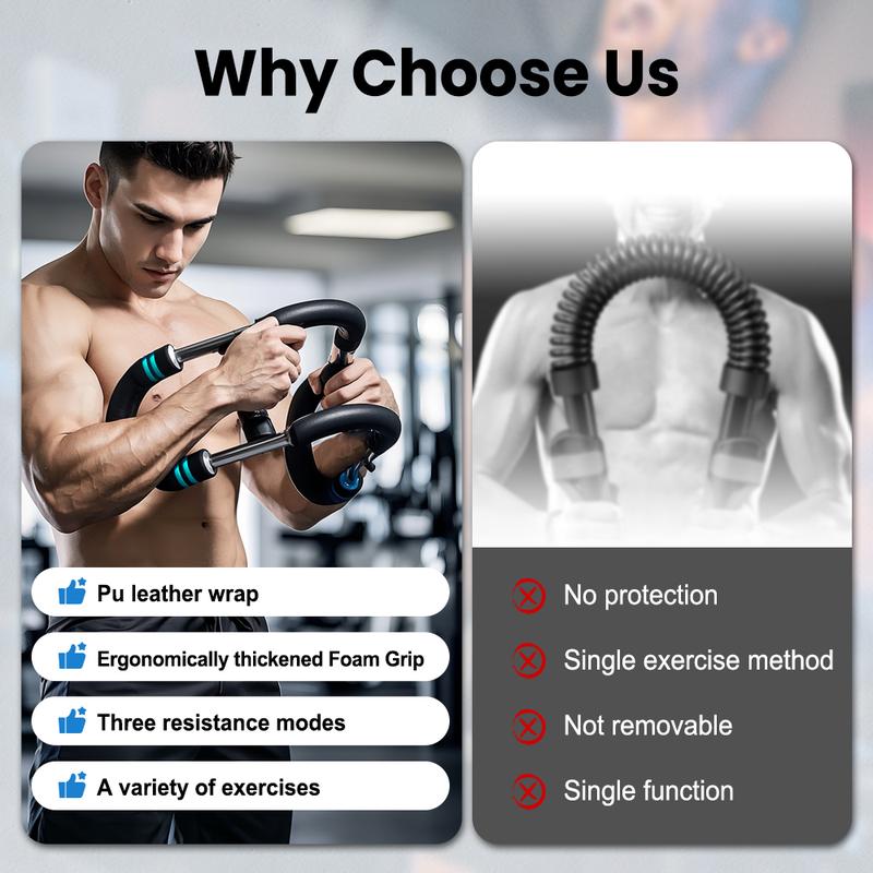 ·【Premium build quality】Crafted with reinforced alloy steel and a high-tension core spring, twister arm trainer delivers exceptional elasticity and long-term durability. The soft PU leather wrap minimizes metal exposure to reduce injury risk, while the ergonomically thickened foam grip ensures afirm, sweat-resistant hold. Three resistance modes let you tailor the workout intensity to your goals.