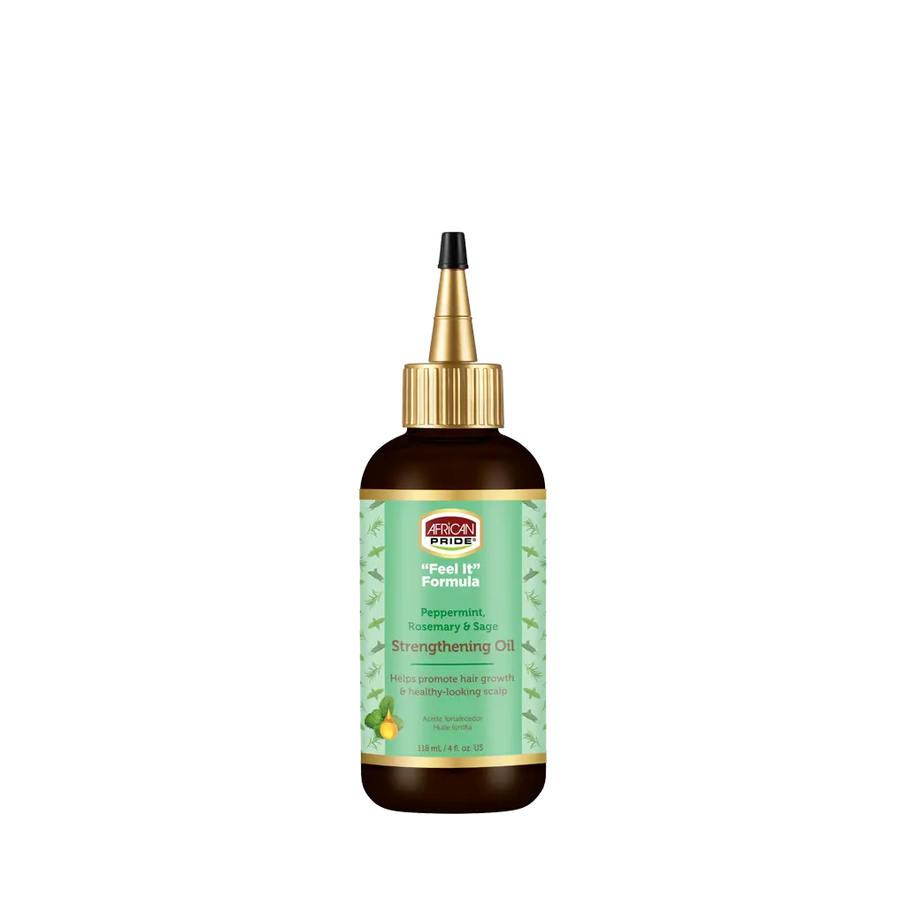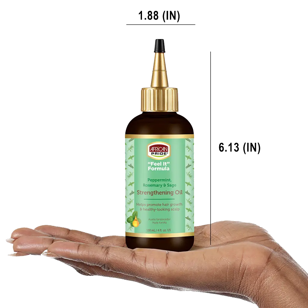 African Pride Feel-It Formula Strengthening Oil with Rosemary Oil, Peppermint Oil and Sage - Helps Promote Hair Growth, Nourishing Treatment for Split Ends and Dry Scalp for All Hair Types, 4 fl oz
