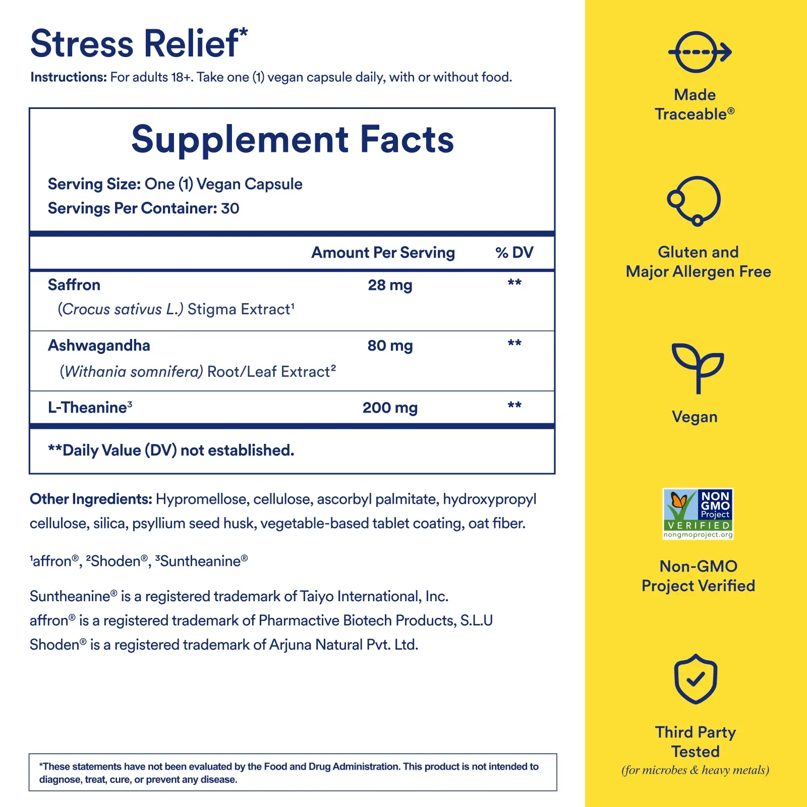 ·Suntheanine L-Theanine (200mg) – Helps promote relaxation & mental clarity.