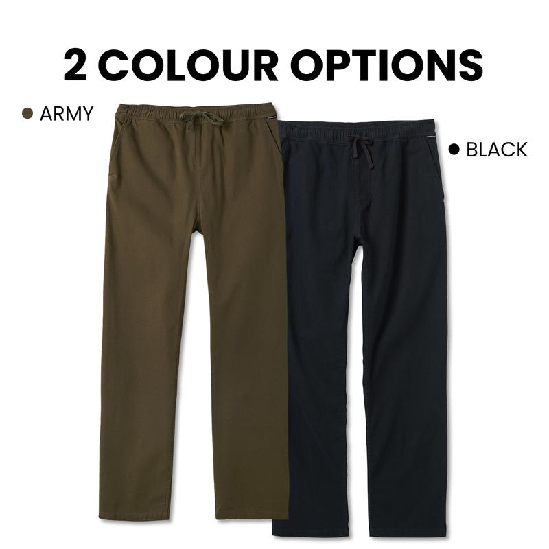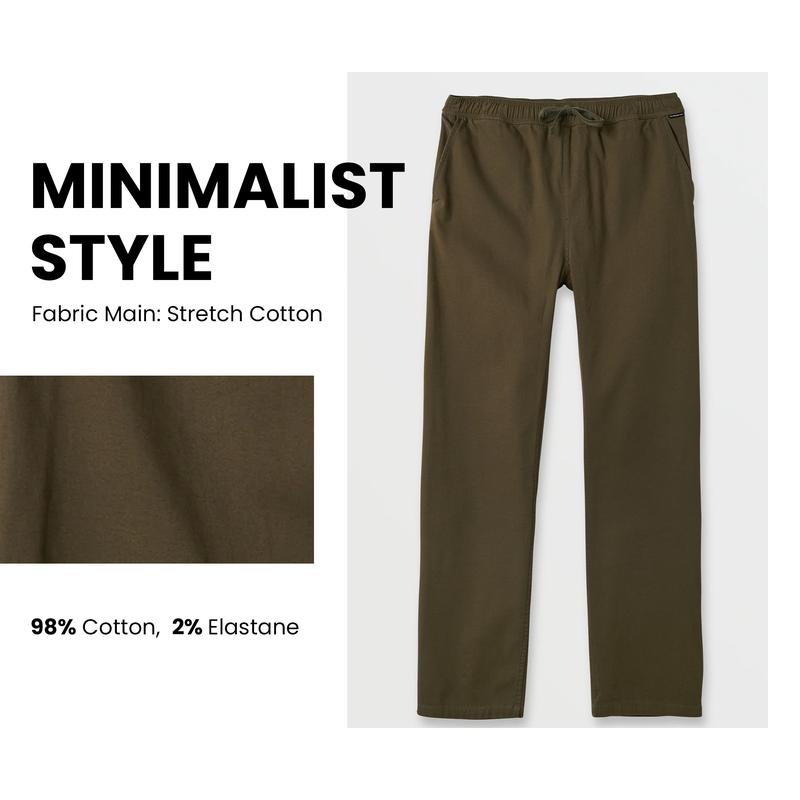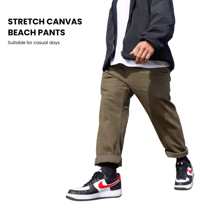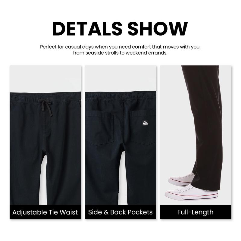 Quiksilver | Stretch Canvas Beach Pants | Mid Waist | Fitted Korean Minimalist Style | Full Length | Side & Back Pockets | Adjustable Tie Waist | Casual Menswear