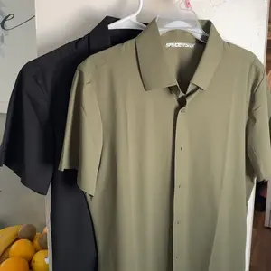 Both shirts fit perfect. I’m 5’9”, 165 lbs and the Medium is spot-on. The stretch fabric feels great, looks sharp, and moves with you. Black and navy both look clean and fitted without being tight. Great quality and definitely worth grabbing the 2-pack.