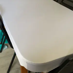 Muy buena calidad la tela estira tiene una licra ajustable ala mesa me encantó