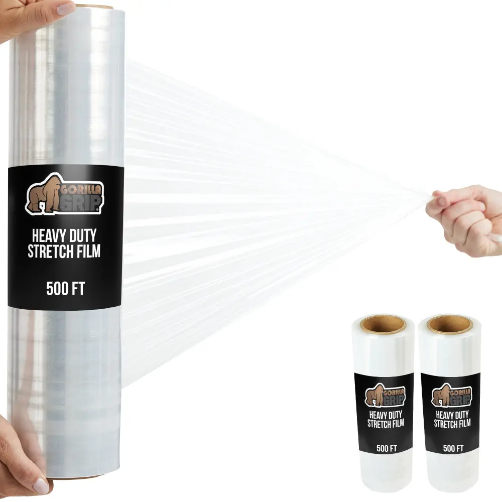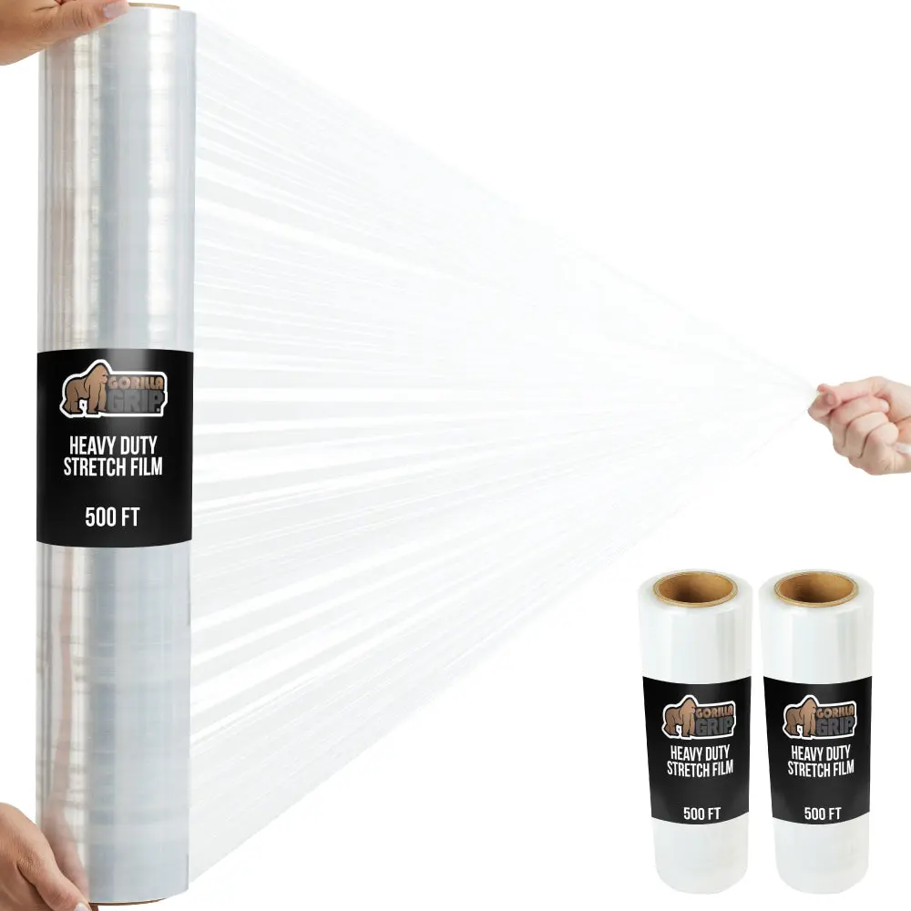 HEAVY DUTY STRETCH WRAP: extra thick and flexible 60 gauge wrap helps cover and protect items for storing, moving, shipping, and warehouse use; 500% stretch for a firm hold