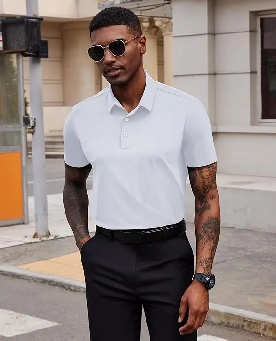This shirt is awesome fits well and makes you look sharp, love the stretchy material and really love the collar