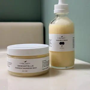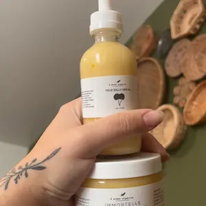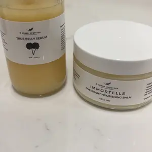 1 x Immortelle Nourishing Balm (4oz) Mango Butter, Organic Shea Butter, Organic Cocoa Butter, Organic Avocado Oil, Organic Rosehip Seed Oil, Organic Argan Oil, Organic Arrowroot Powder, Cera Bellina, Vitamin E Oil, Organic Immortelle Essential Oil