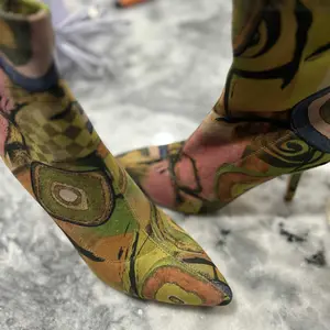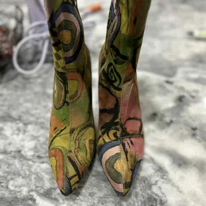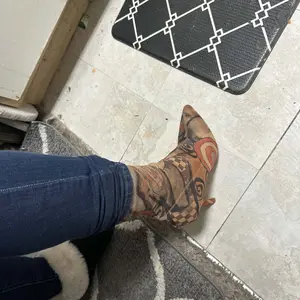 Absolutely love my boots, I purchased the ones that have mostly blue on them. Theyâre actually pretty comfortable and true to size. I wear a 6.5 but purchased a 7. Received a lot of compliments!!! Will be purchasing the other color also.