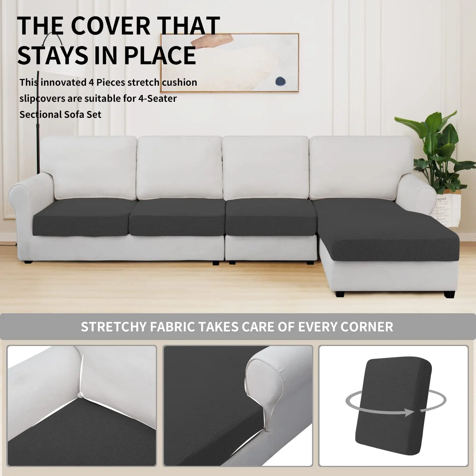 EASY TO INSTALL: Sewn with thick elastic loops to cover the bottom edges. It is easy to install and take off, making your home more harmony, high recommended for both leather and cloth furniture. PACKAGE: 4 pieces cushion covers.