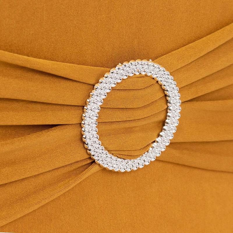 5. Stretch Spandex Chair Cover Gold for Folding Chairs - Enhanced Style & Secure Fit Slipcover with Stunning Silver Rhinestone Buckled Sash Band