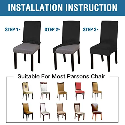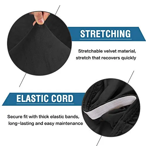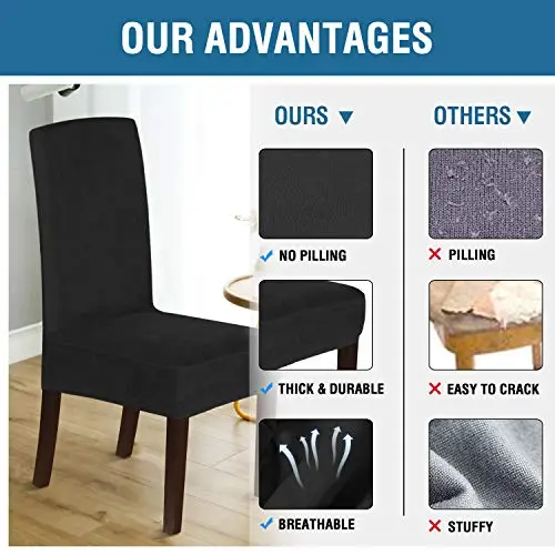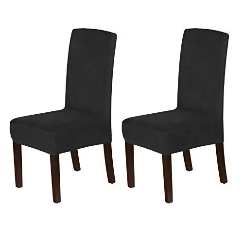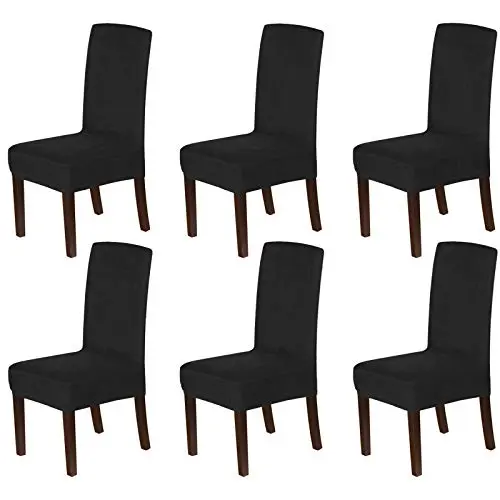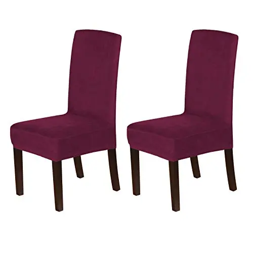These premium form-fitting dining chair covers are crafted from super-rich velvet fabric, feature two-way high stretchy and luxurious, feel smooth, durable, make your room more tidy and beautiful, give your old, damaged chairs a brand new look. Recommended for dining room, home, hotel, wedding banquet, dinner, meeting, celebration, ceremony.