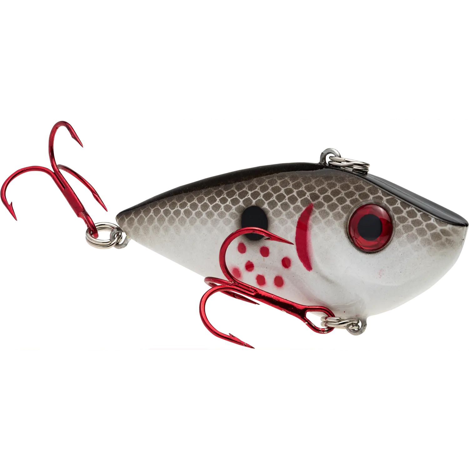 ·The 2.5 Inch Strike King Red Eyed Shad Lipless Crankbait is a ultra unique Lipless Crankbait that's body shape/design results in incredible action and vibrations!