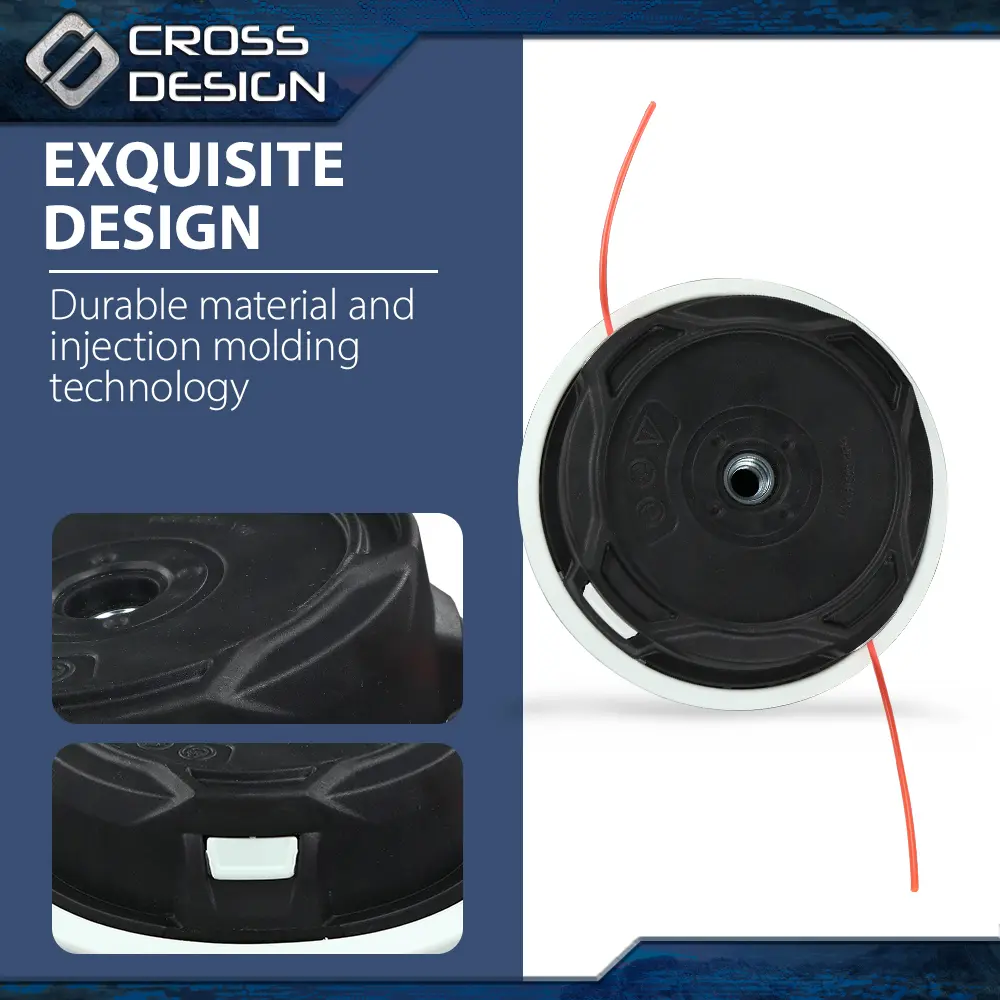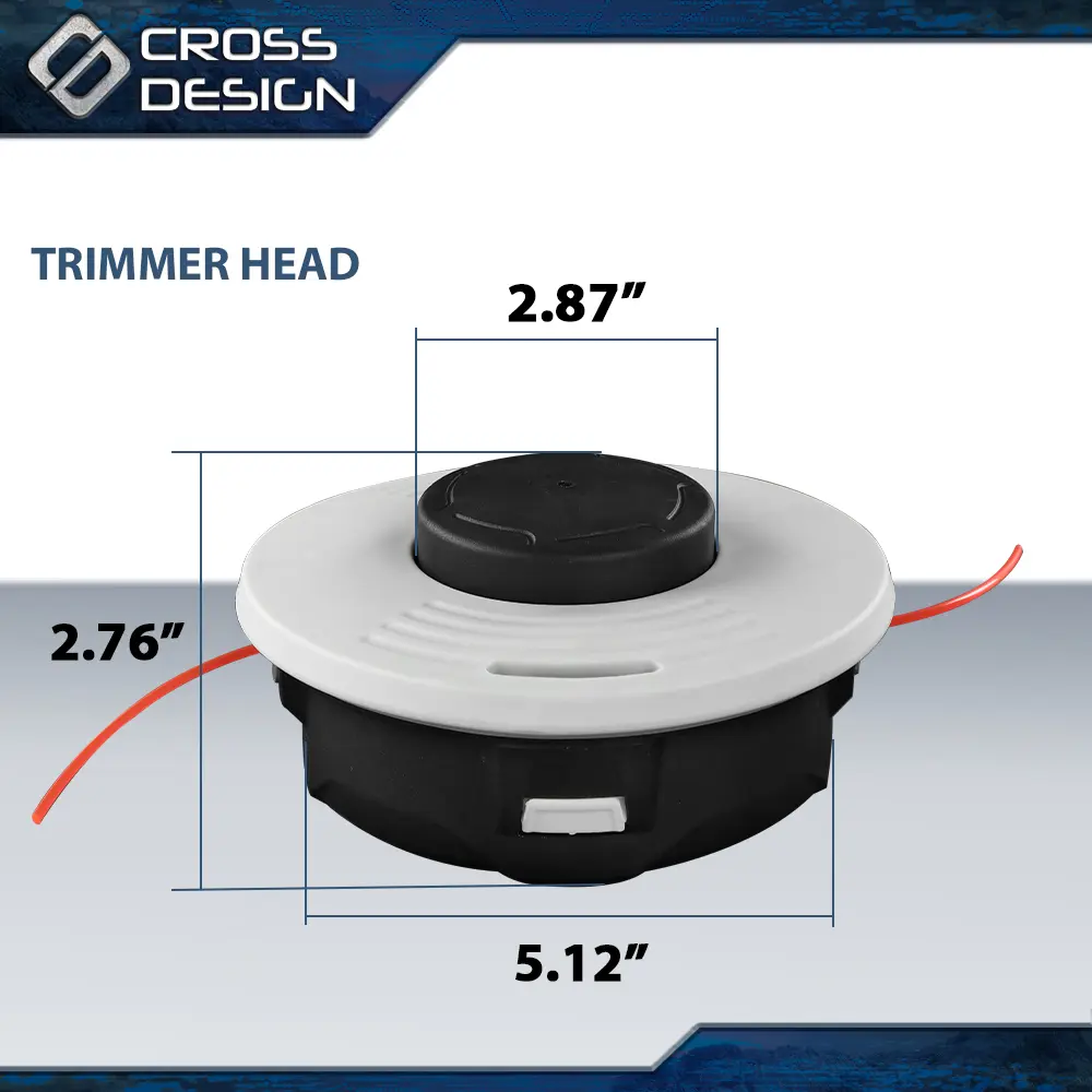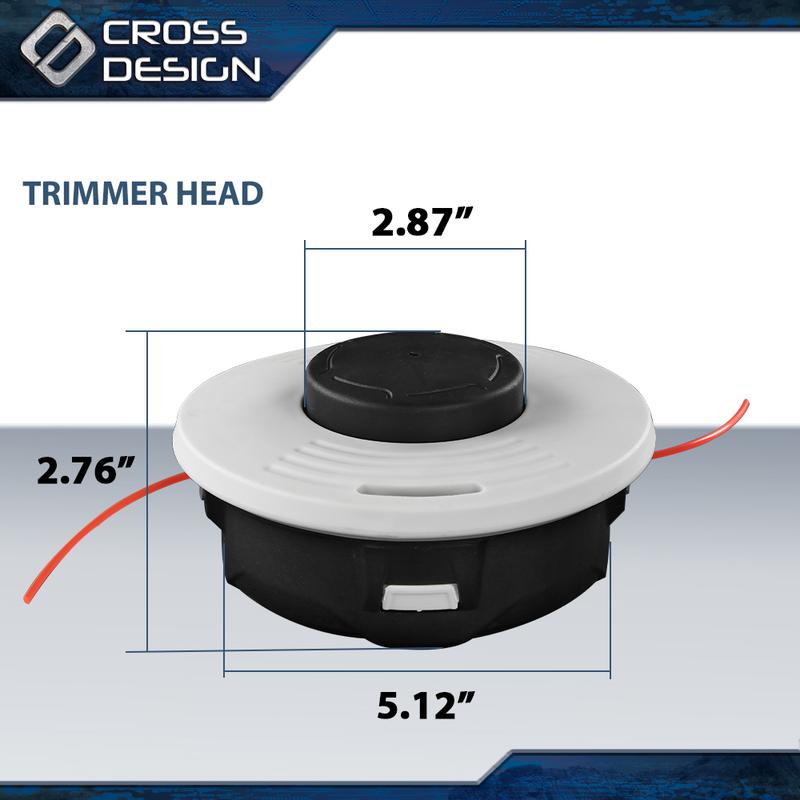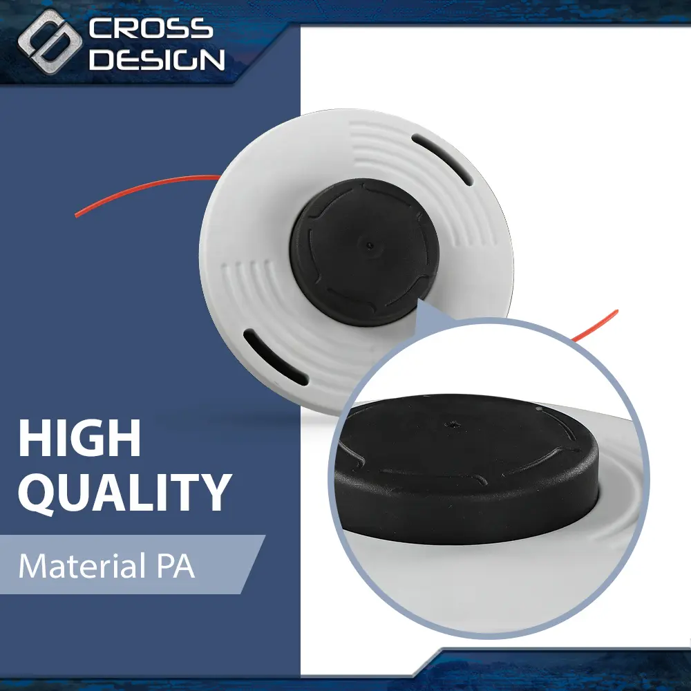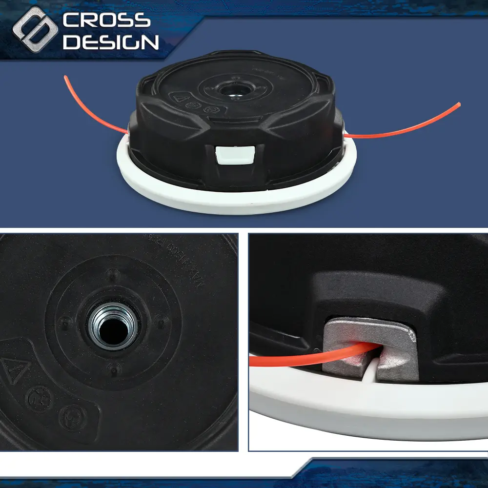 Use with 2.7mm round line; Double line for mowing and thinning; The nylon line is automatically adjusted by tapping the cutting head against the ground.