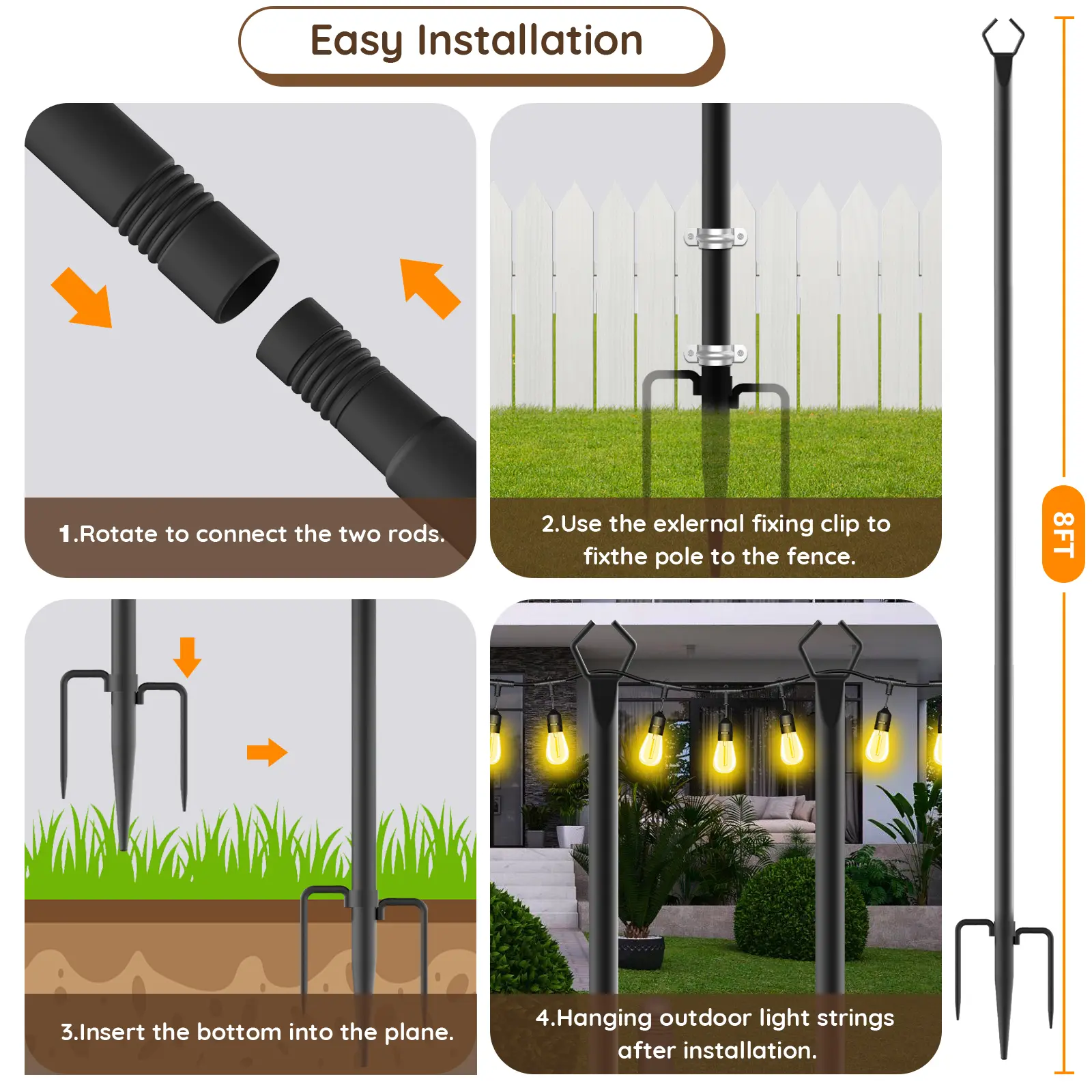 The Outdoor String Light Pole is a great decorative lighting tool for outdoor parties and get-togethers. It has a simple yet practical design and can be easily installed to provide both cozy lighting and a romantic atmosphere for events. The string light poles are usually made of weather-resistant materials that can withstand the wind and sun, making them suitable for a variety of outdoor environments.