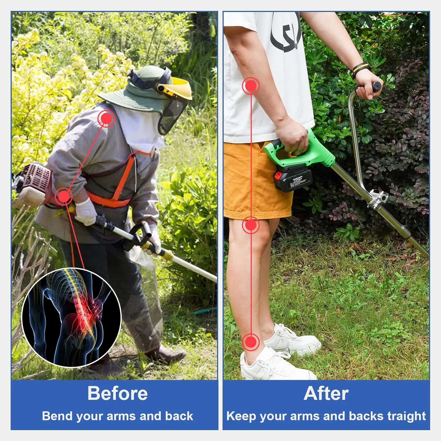 Handle: Our weed eater handle adopts an design.After installing this trimmer handle on your axis, just slide the size up or down to find a comfortable position.It can reduce the on the during the long-term period, maintain a more upright position, and reduce and .