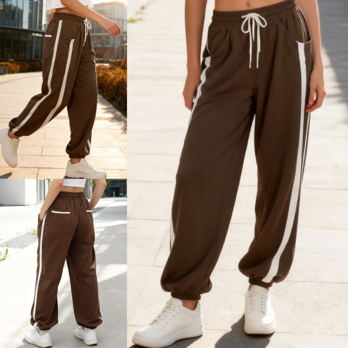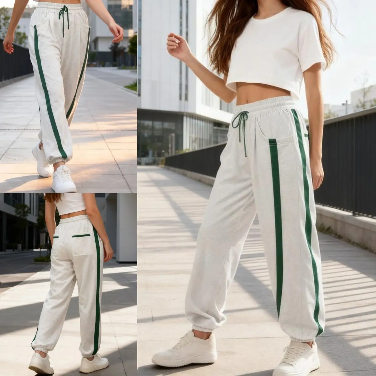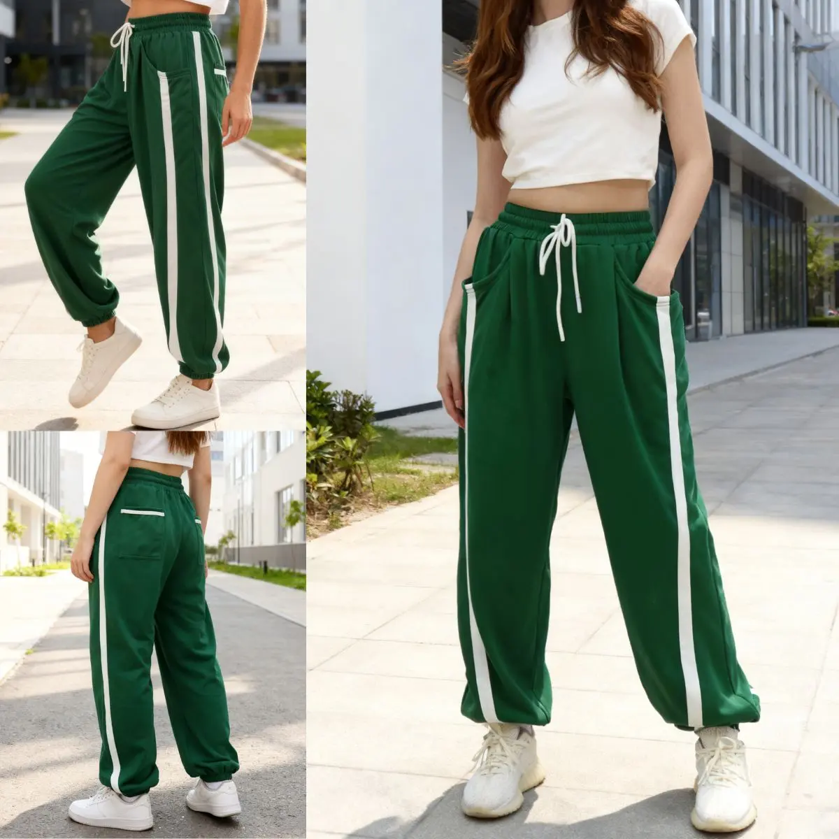 These sweatpants are made of 20% polyester and 80% cotton, offering a soft, comfortable, elastic, and breathable fabric. Perfect for sporting or lounging, they suit women, ladies, and teen girls. The material ensures ease and comfort, making them ideal for various activities.