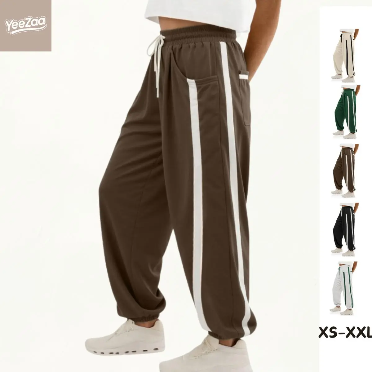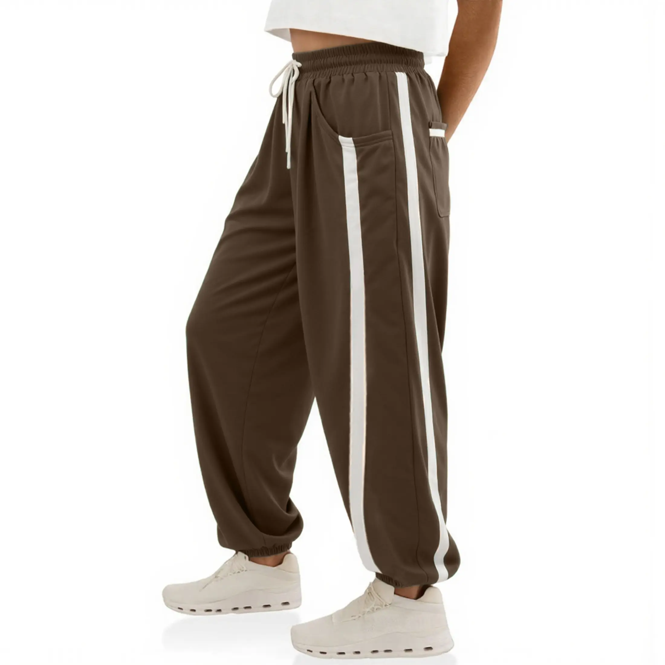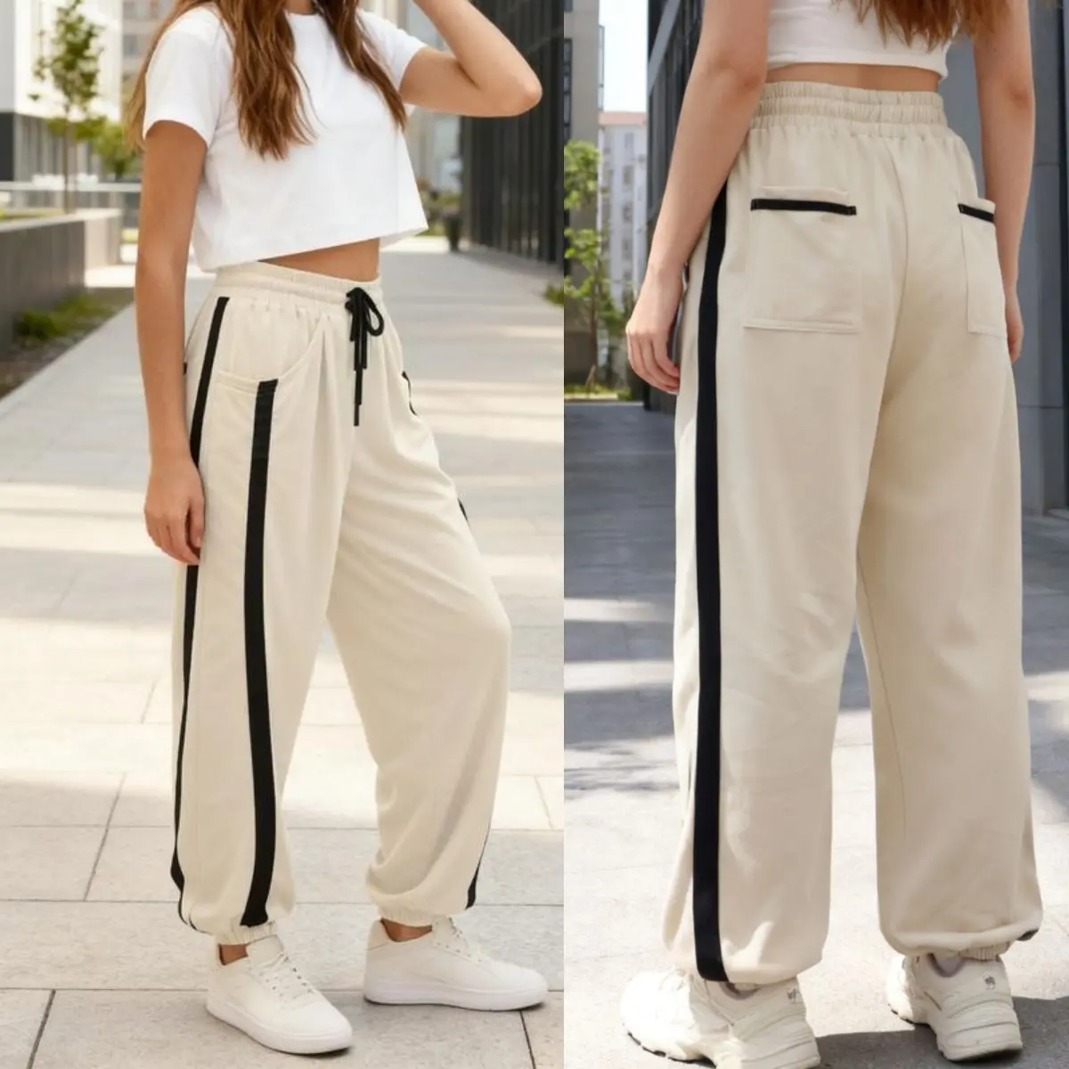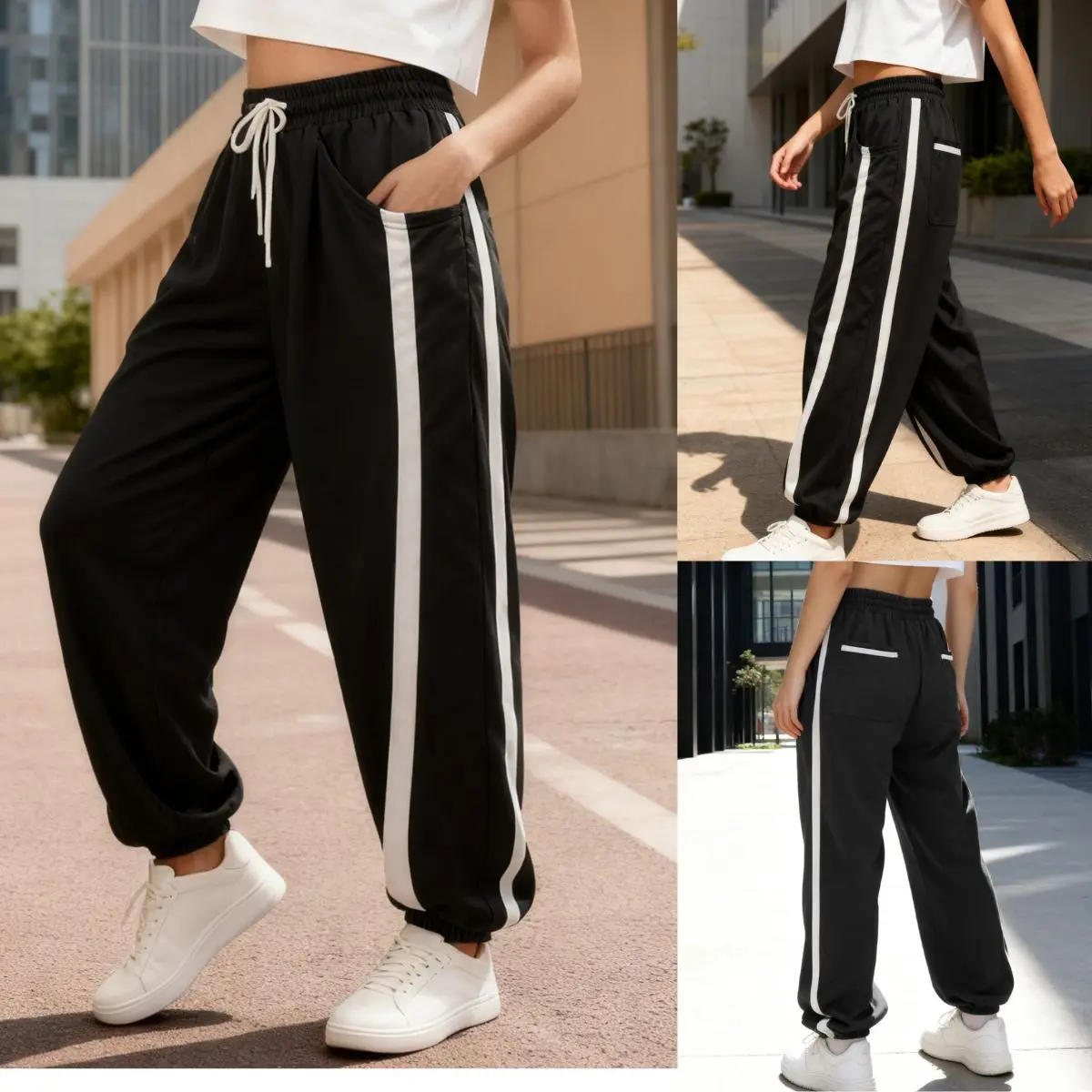 These sweatpants are made of 20% polyester and 80% cotton, offering a soft, comfortable, elastic, and breathable fabric. Perfect for sporting or lounging, they suit women, ladies, and teen girls. The material ensures ease and comfort, making them ideal for various activities.