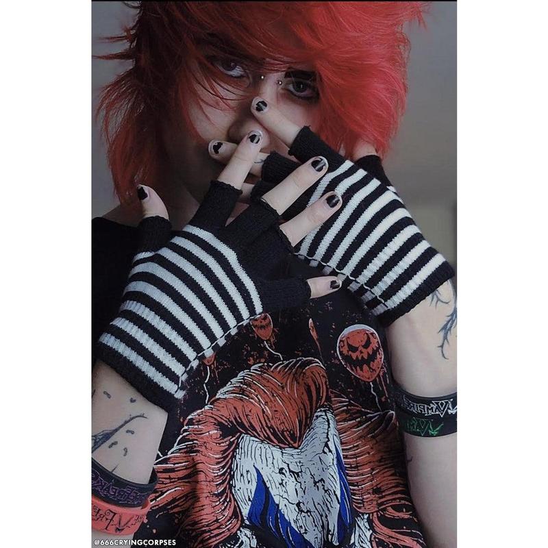 Striped Fingerless Gloves [Multiple Colors Available]