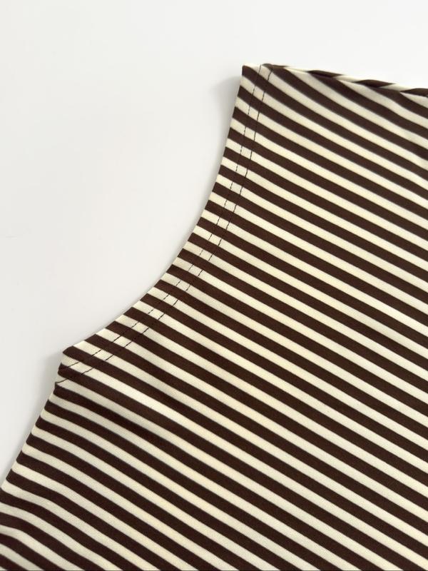 5. Striped Crop Top Women Cold Shoulder Halter Neck Sleeveless Tie Neck Cut Out Shoulder Slim Fit Casual Streetwear Summer Cropped Top Stretchy Knit Brown Striped Y2K Chic Casual Sexy Trendy Lightweight Daily Wear Modern Minimalist Top