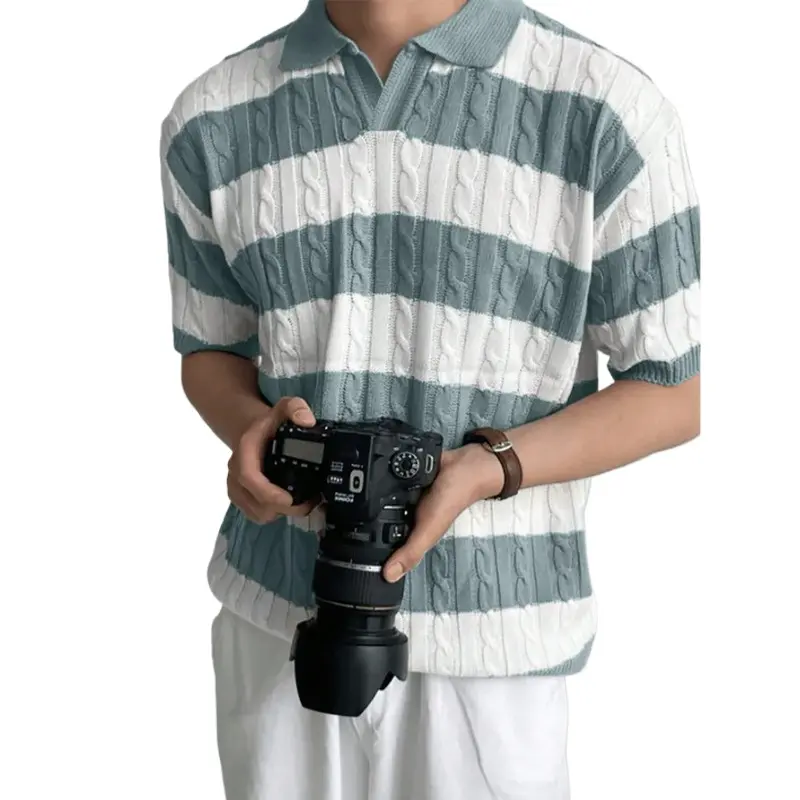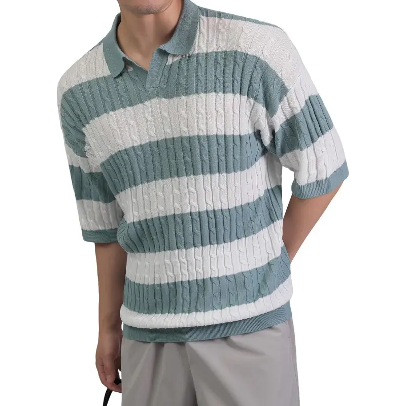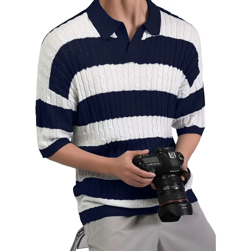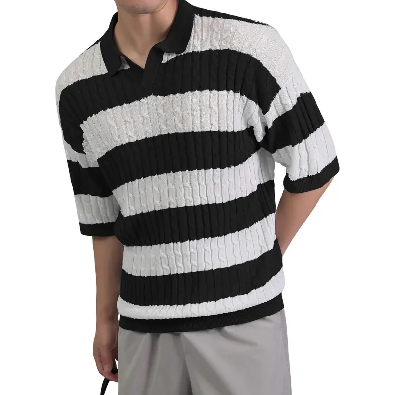 🌞 HYPESTFIT Men Striped Short Sleeve Knitted Polo Shirt For Spring And Summer