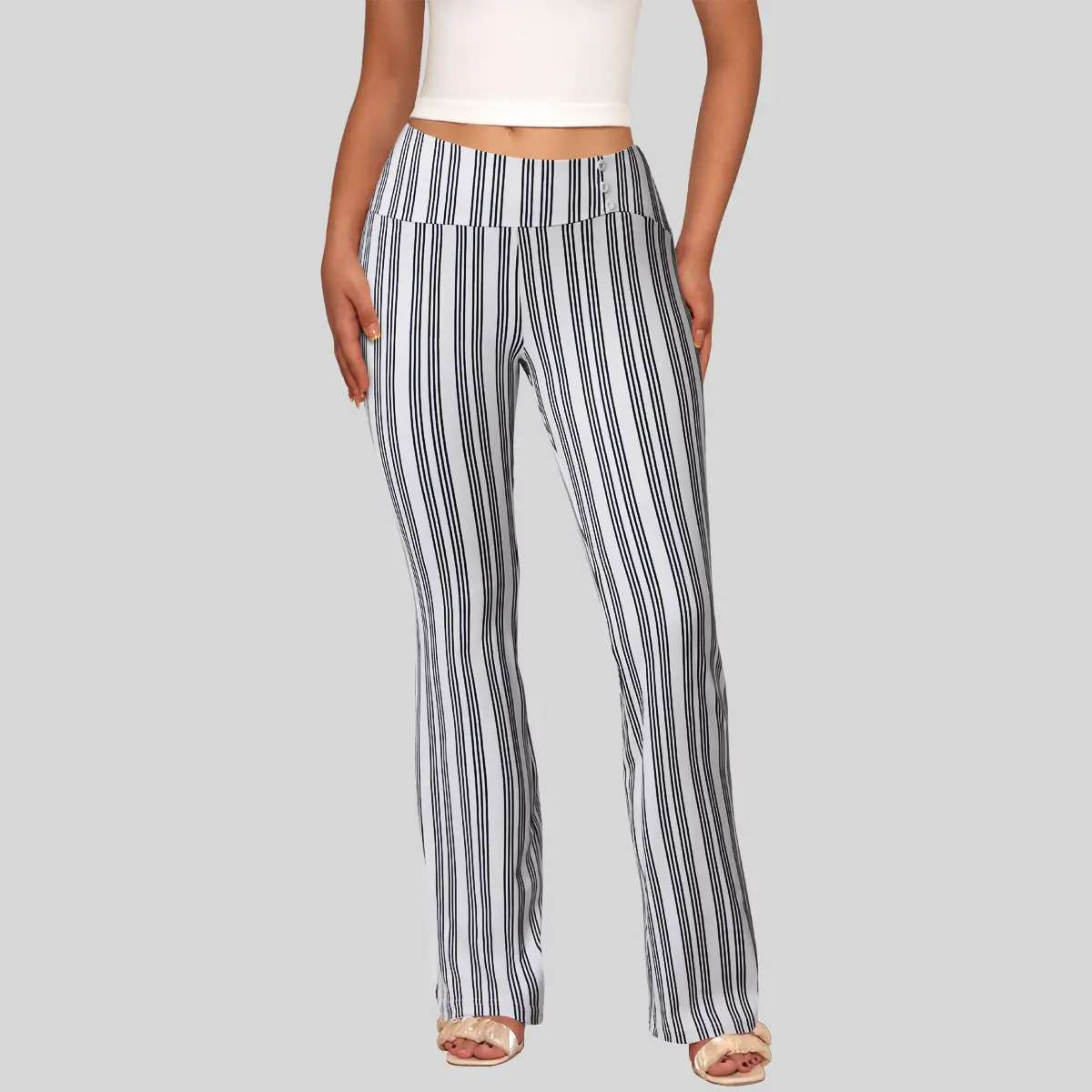 Fabric: These trousers are made of 90% Polyester+10% Spandex, the high-waist design ensures a flattering silhouette, while the striped pattern adds a touch of elegance. Ideal for pairing with various tops, these pants are a wardrobe essential.