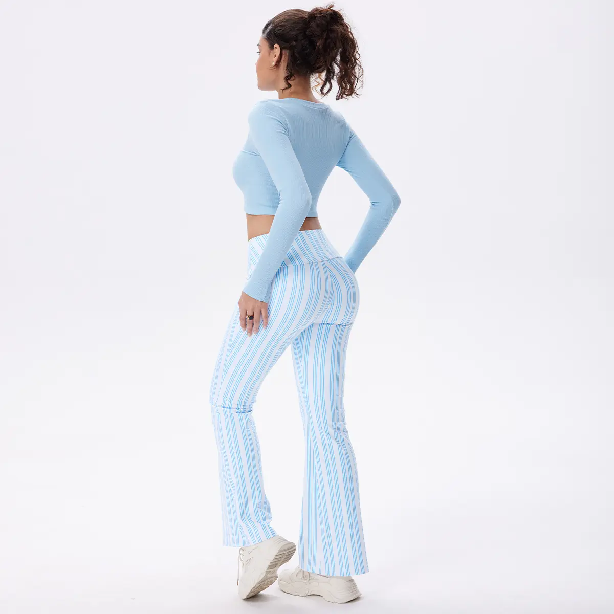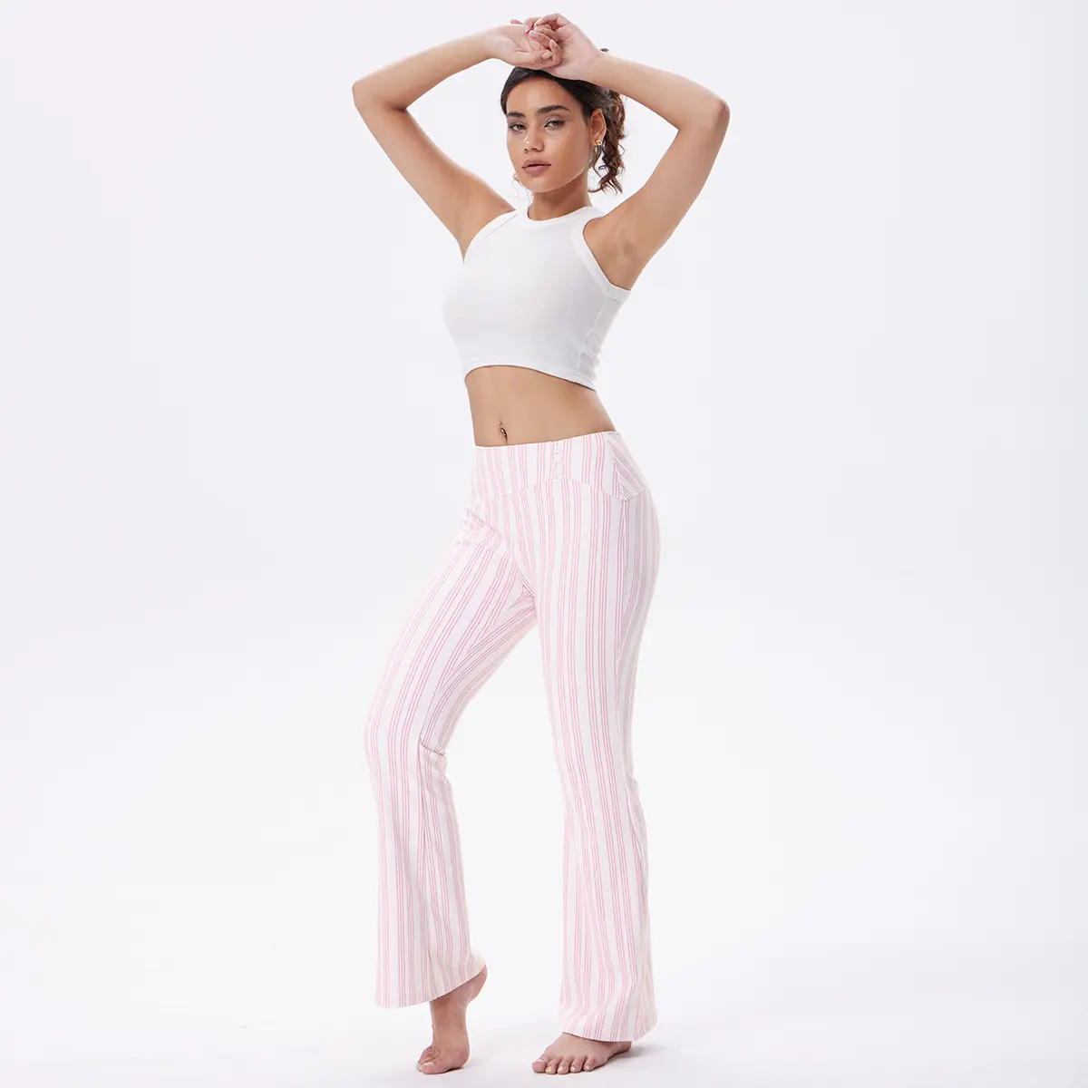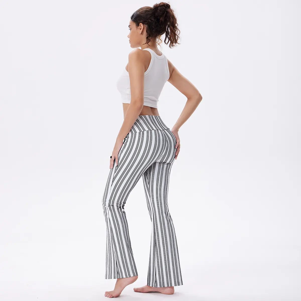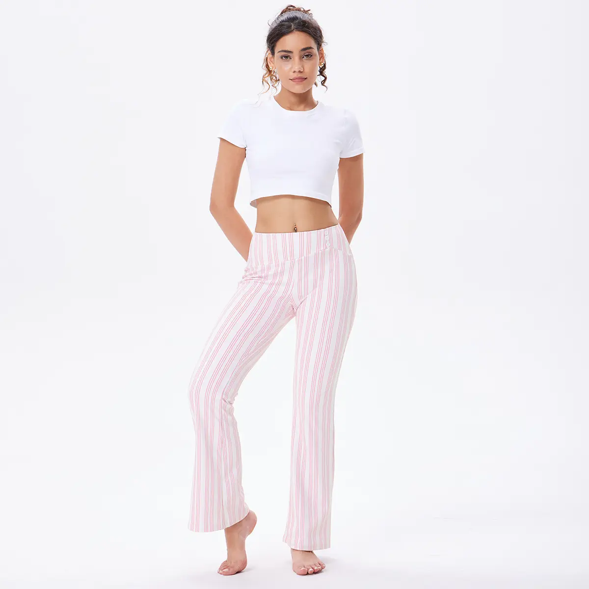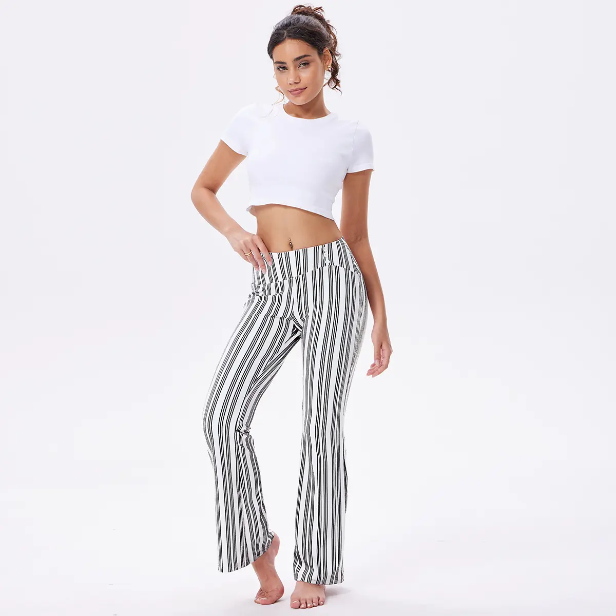 OQQ Women's Striped Trousers High-Waist Striped Flare Pants - Casual Long Trousers Sport Workout Pants#oqq #womenspants #flarelegpants #highwaist #casual