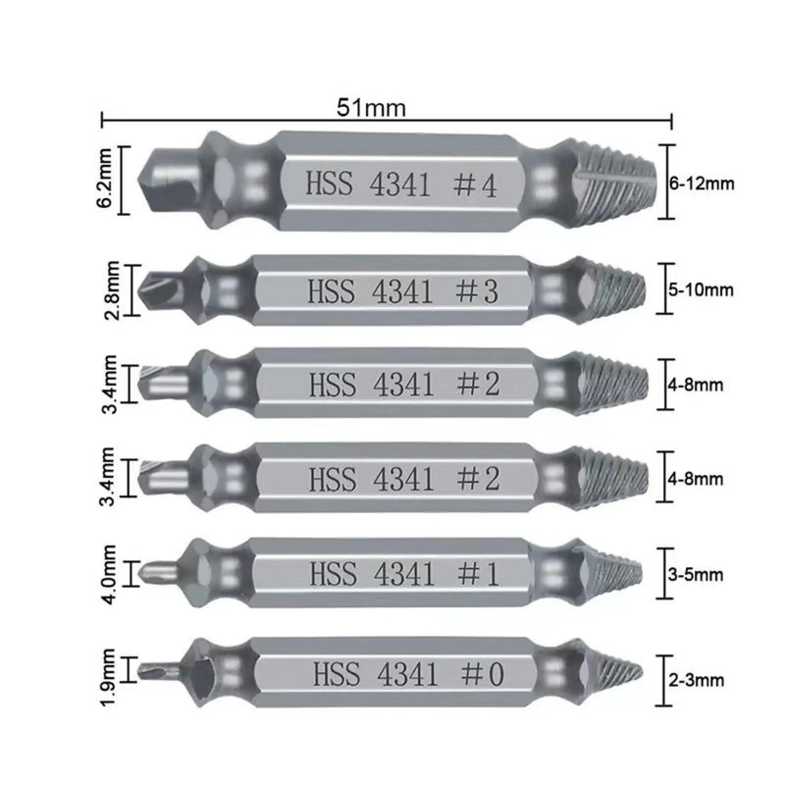 Stripped Broken Screw Remover,6 Counts Set Easy Out Bolt Extractor, Damaged Screw Extractor Set,Double Head Extraction Design Extractor Head,Household Repair Tools, Power Tool Accessories, Screwdriver Bit Clip.
