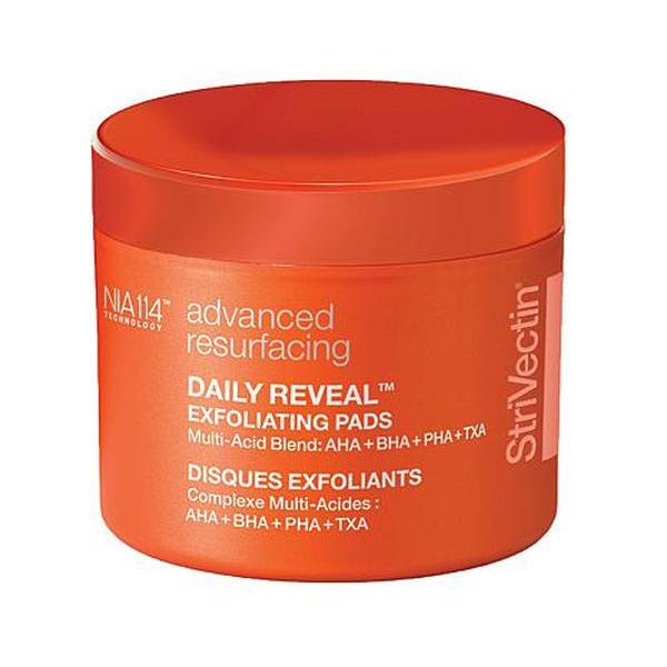 StriVectin Daily Reveal Exfoliating Pads What It Is StriVectin Daily Reveal Exfoliating Pads help smooth and visibly brighten the appearance of skin.  What You Get 60 Daily Reveal Exfoliating Pads What It Does Formulated with a blend of exfoliating acids Includes AHAs and PHAs (alpha hydroxy and polyhydroxy), BHAs (betahydroxy), and TXA (tranexamic) Once-a-day resurfacing pads exfoliate to reveal the appearance of visibly brighter, glowing skin How to Use Use once daily. Swipe pad over clean skin in the morning or evening.