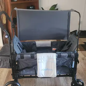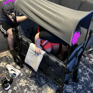 I love this wagon stroller! Finally something thatās not too pricey but still gets the job done. Itās easy to assemble, it folds so you can definitely take it anywhere. Finally, I love the canopy that came with the wagon, this will help my two boys nice and cool and sun protection.