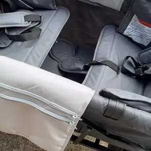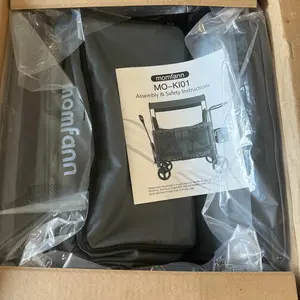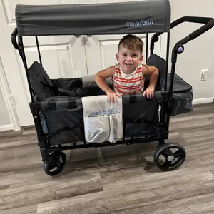 Not as advertised. Not one momfann logo. Momfann weight capacity says 200lb. This says 33lb per seat with only enough leg room for 1. My son is larger than his age range so I was looking for one with a good weight limit. Brake system is hard to unlock.