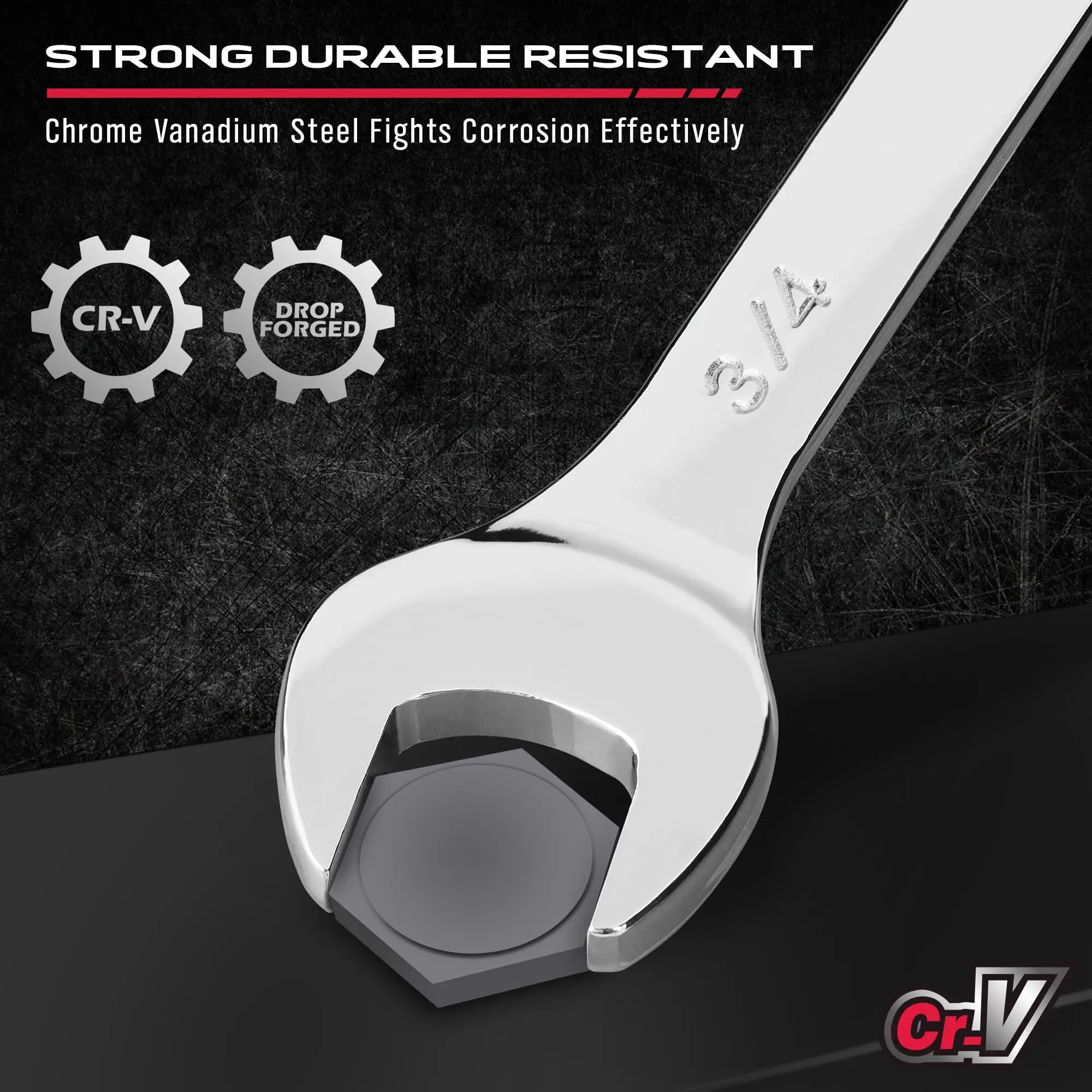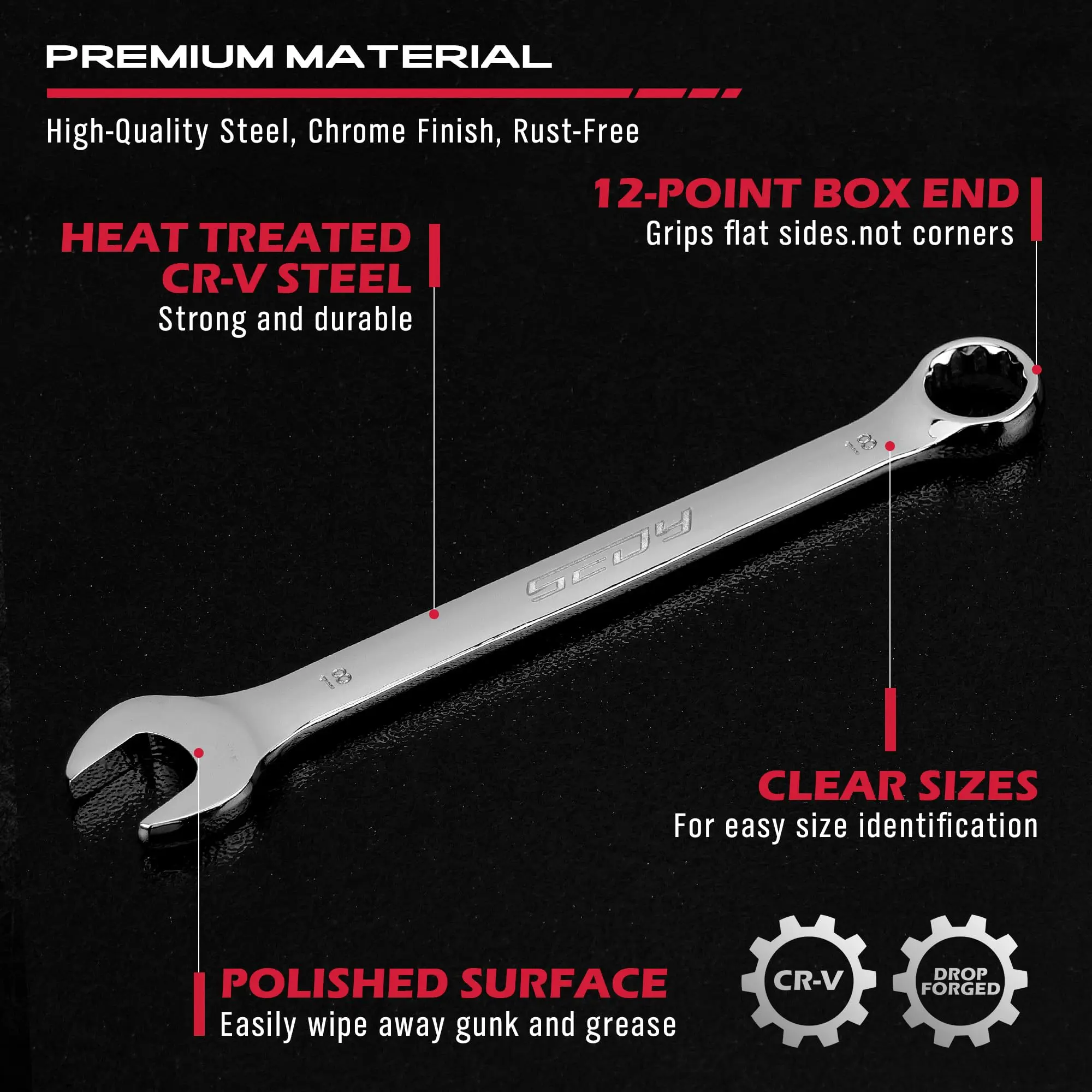 DURABLE CONSTRUCTION - Built to last, this wrench set is forged from premium chrome vanadium steel with a mirror chrome finish for corrosion resistance and extended durability, ensuring your tools withstand the rigors of heavy use