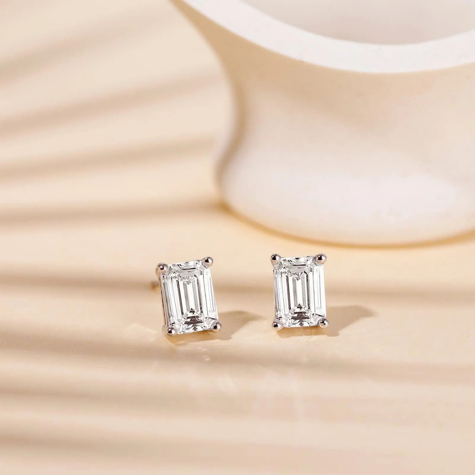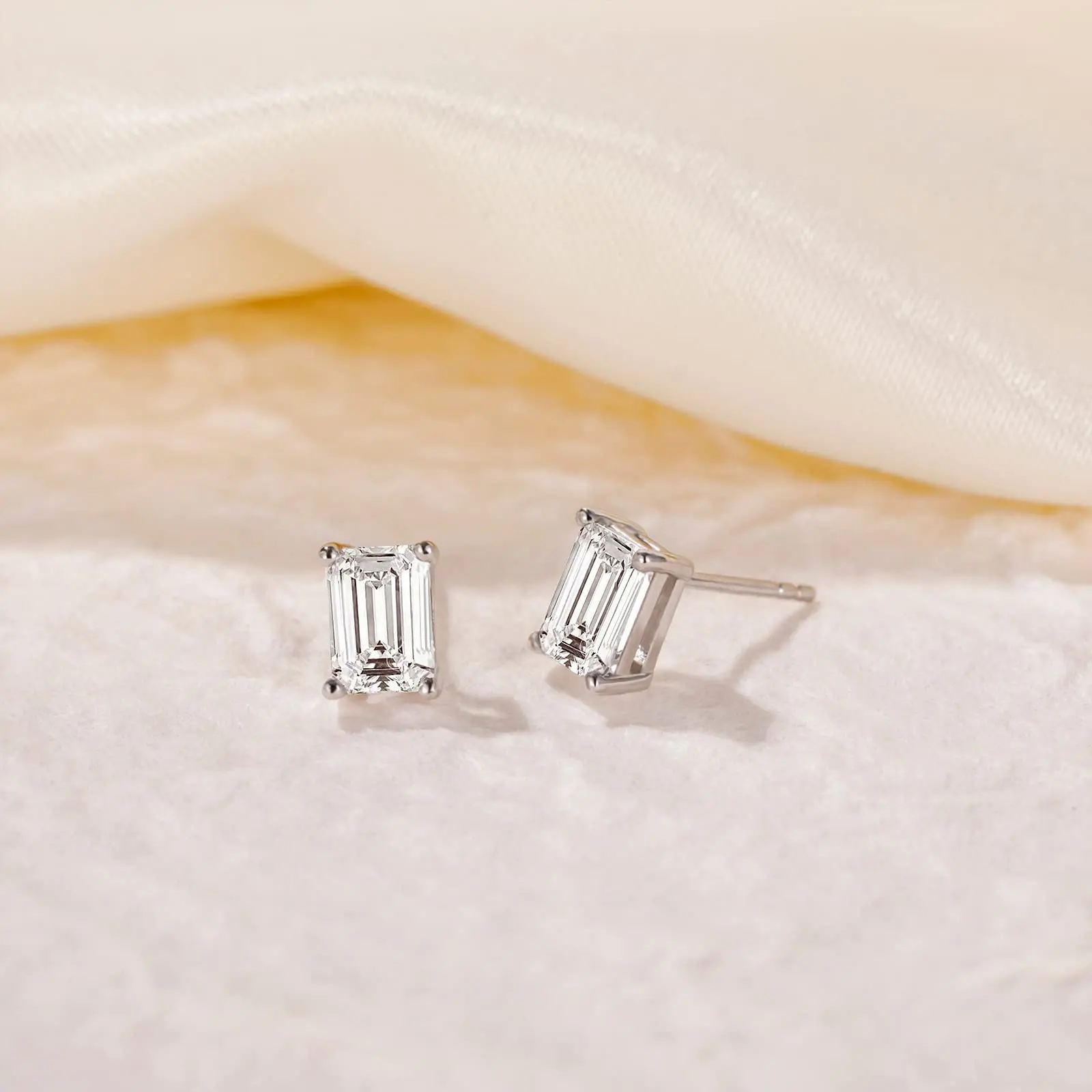 ·♥ Stylish ♥ These sleek and eye-catching stud earrings feature glistening emerald-shaped CZ stone secured by guardian back. These beautiful 1carat dainty earrings are the height of elegance and simplicity,they are very small and simple, easy to put in and to take off