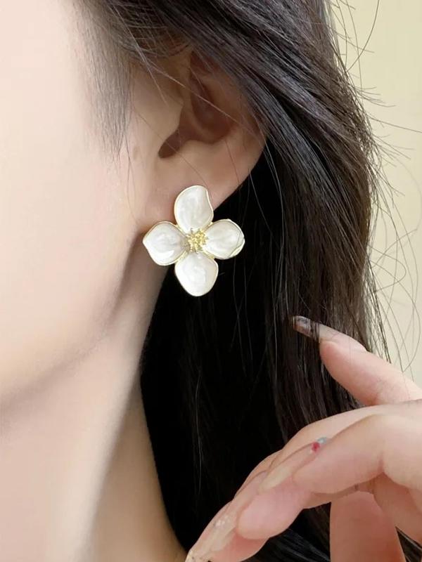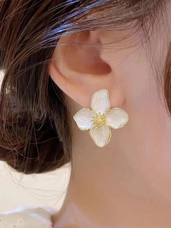 Faux Pearl Decor Flower Design Stud Earrings, Elegant Jewelry for Women, Trendy All-match & Exquisite Jewelry for Birthday Gift, Statement Earrings
