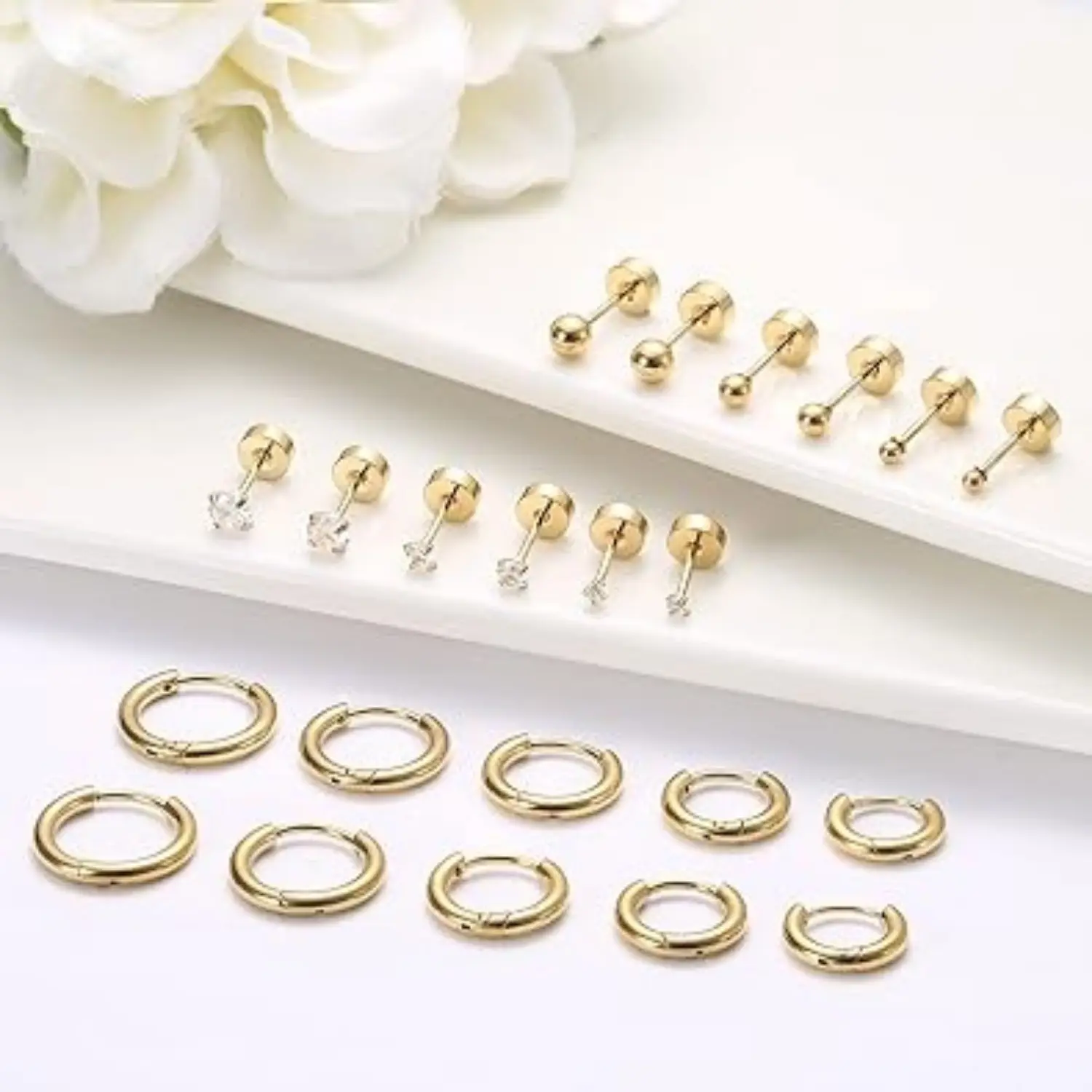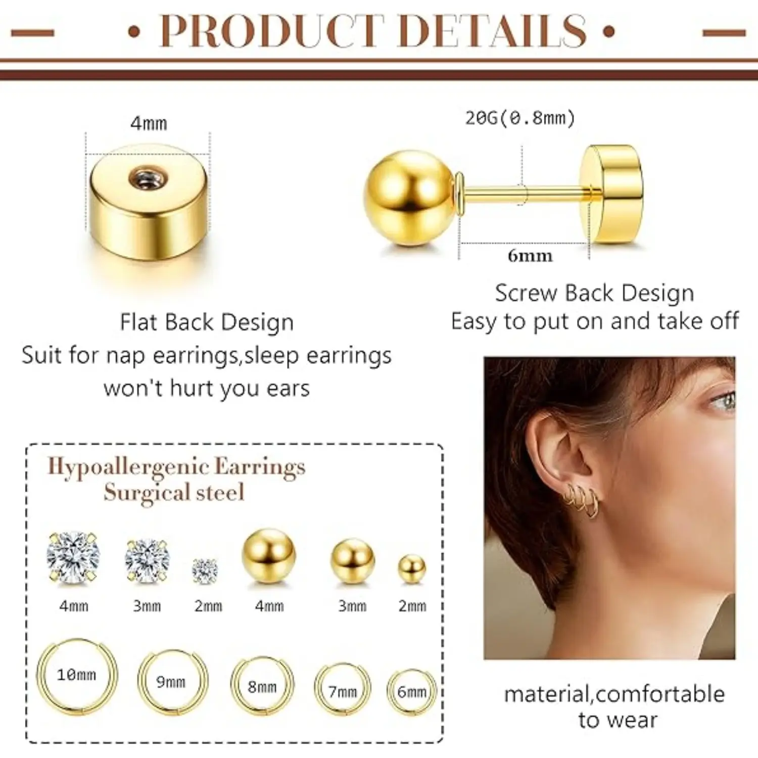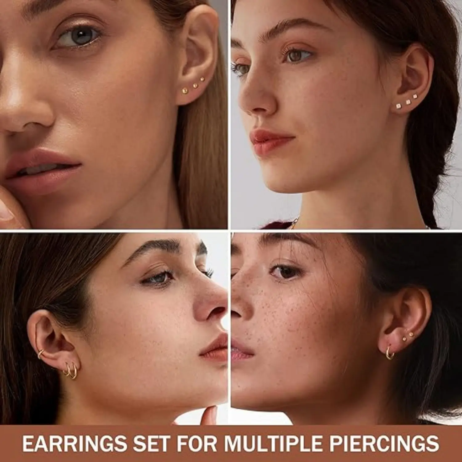14K Gold Plated Earring Sets for Multiple Piercing, these earrings are durable and hypoallergenic for long-term wear. There is no need to remove them when sleeping, working, exercising, swimming, or showering.