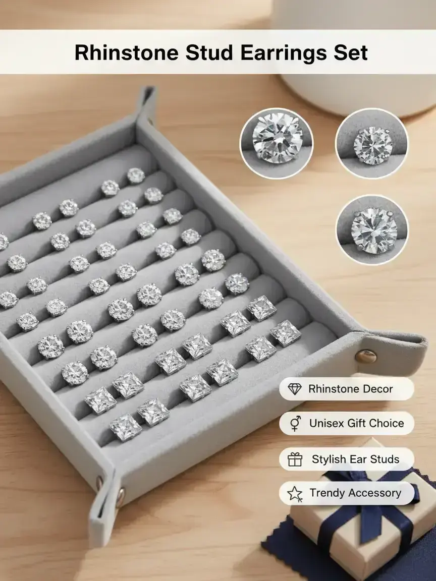 Rhinestone Decorated Stud Earrings Set, Fashionable Jewelry for Women & Men, Trendy All-match & Exquisite Jewelry for Birthday Gift, Ear Studs