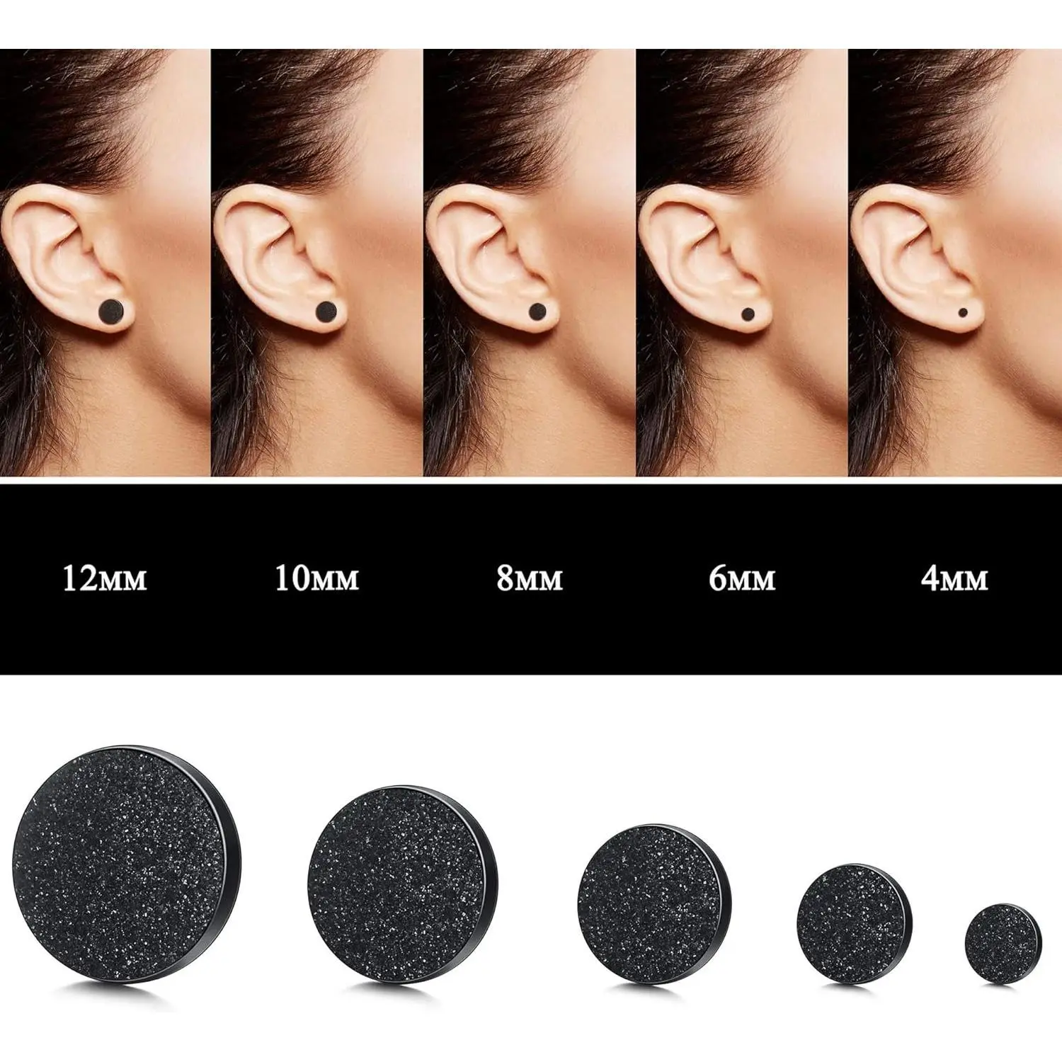 【 Black Ear Studs DIMENSION】:Round earrings are available in five sizes, 4mm, 6mm,8mm,10mm,12mm.Perfect sizes for men and women. Fit for any occation and any suit.Suitable for Most Men and Women.Smooth Outer Surface,No Need to Worry About Damaging Your Skin When You Wear It.