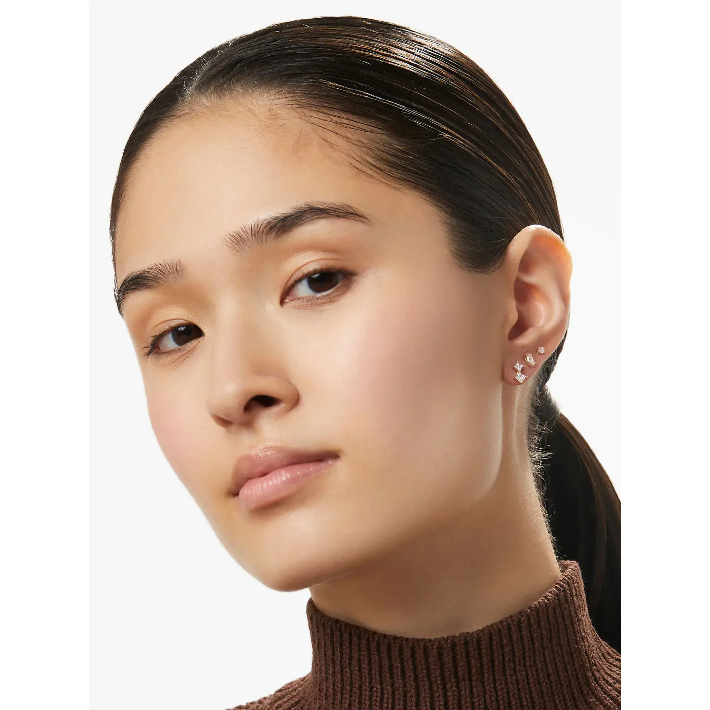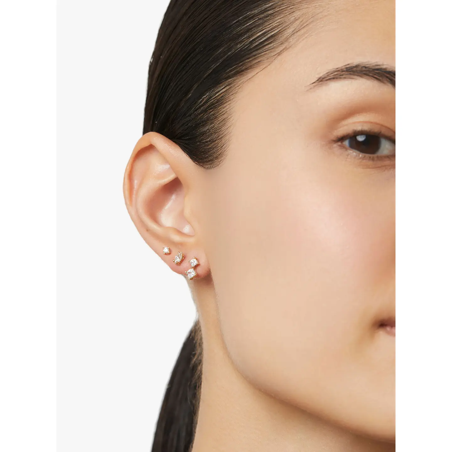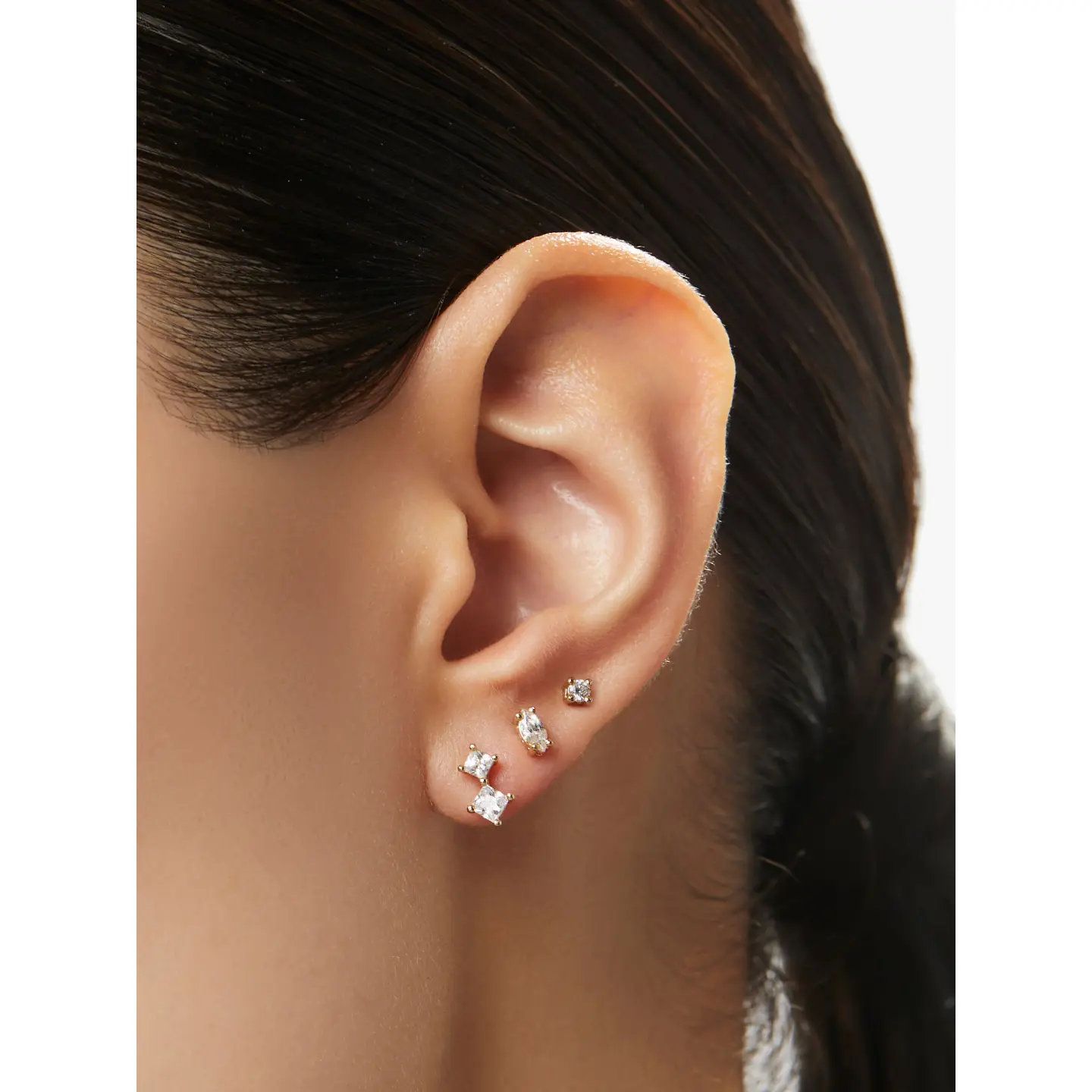 This stud earrings set with white cubic zirconia set in prongs is sure to add a bit of sparkle to your earring game. Dipped in 14K gold, these earrings are delightfully comfortable and so lightweight, you'll forget you have them on. Mix or match these sparkling studs earrings set for an original look or create the ultimate ear stack. This set is also available with pink-red gemstones, and with blue-green gemstones.