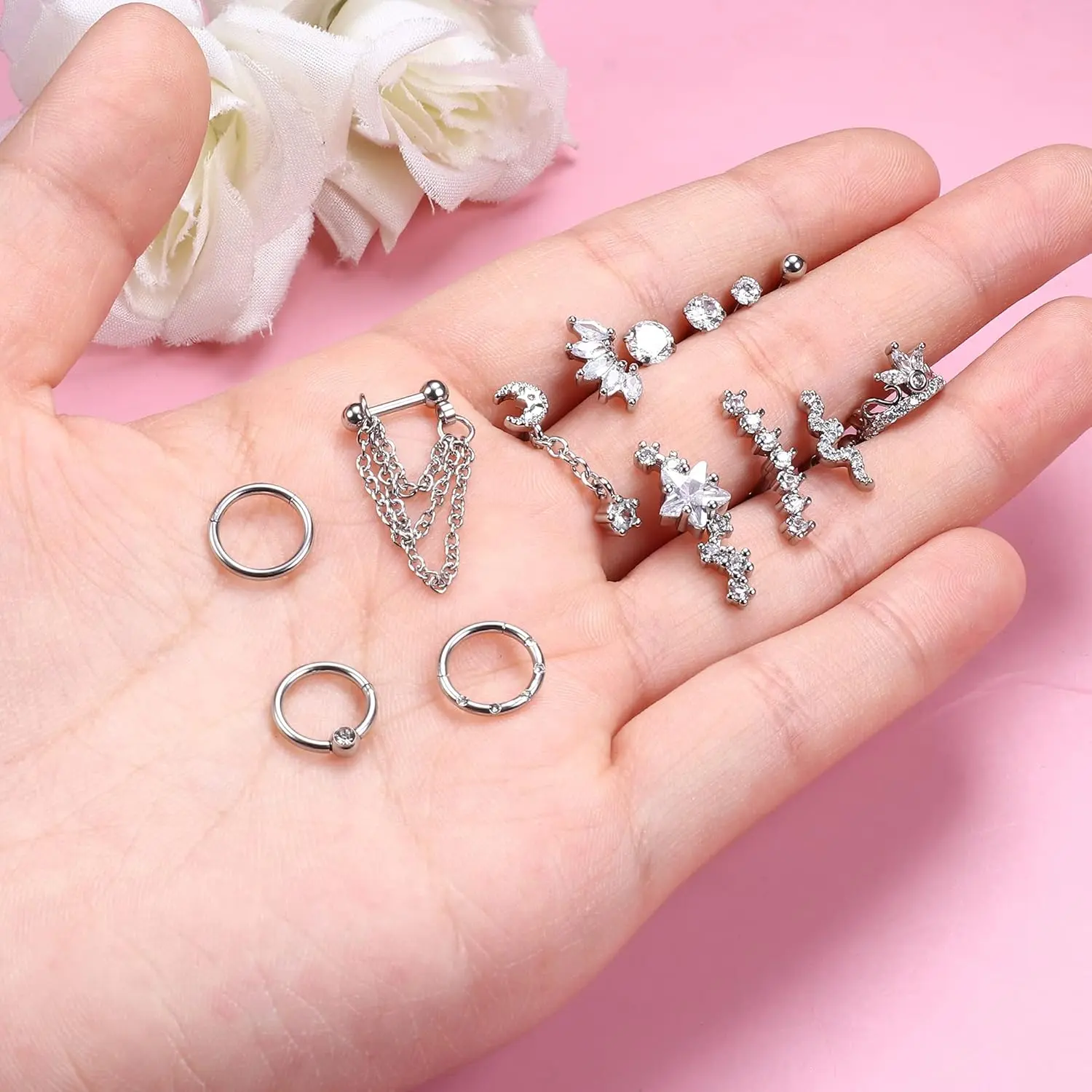They are really pretty and secure. Everything I’m wearing (except for the daith piercing) came from the set